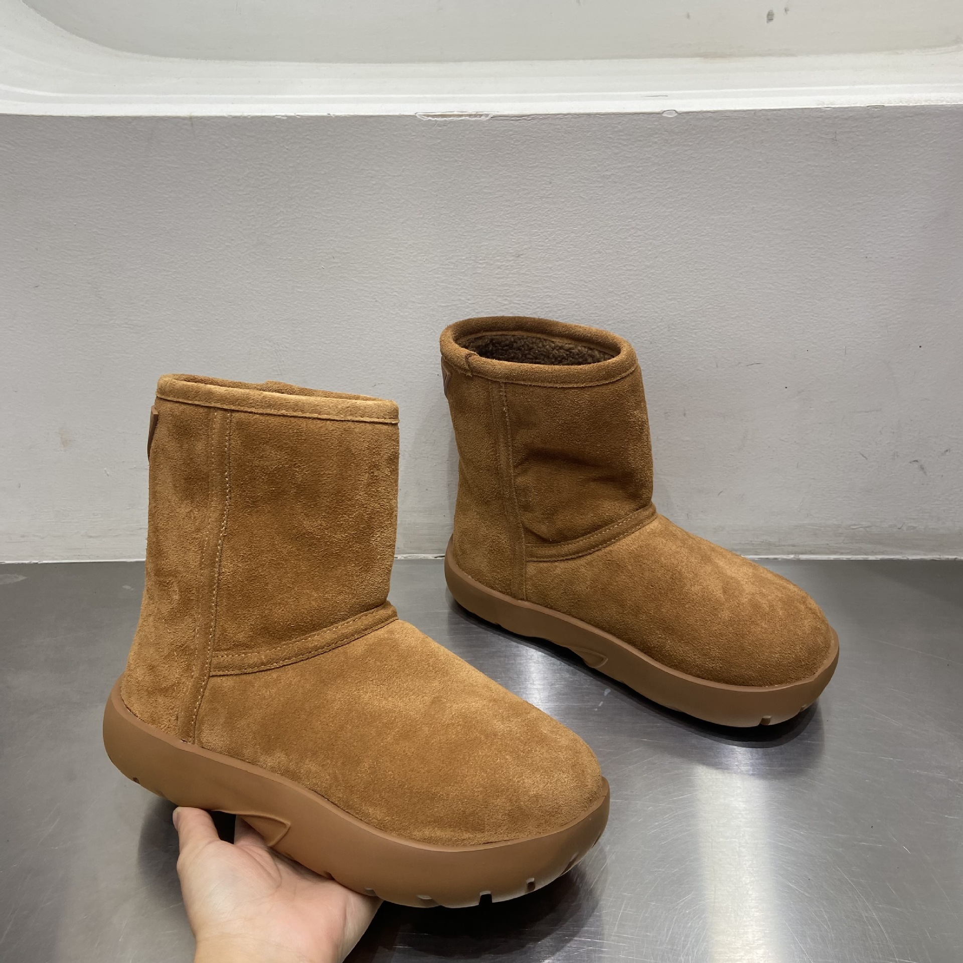 두꺼운 밑창 스노우 부츠 여성용 2023 겨울 새 모피 원 모든 경기 패션 두꺼운 밑창 기모 짧은 스노우 부츠 여성