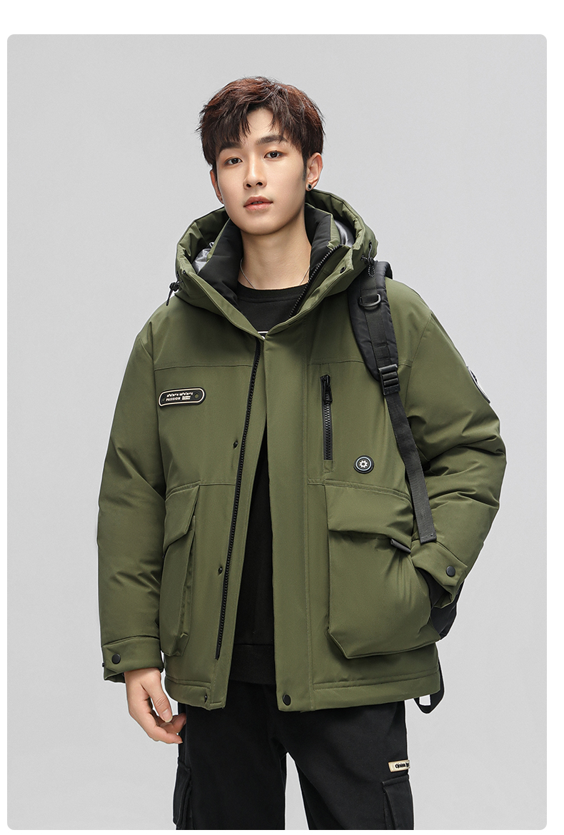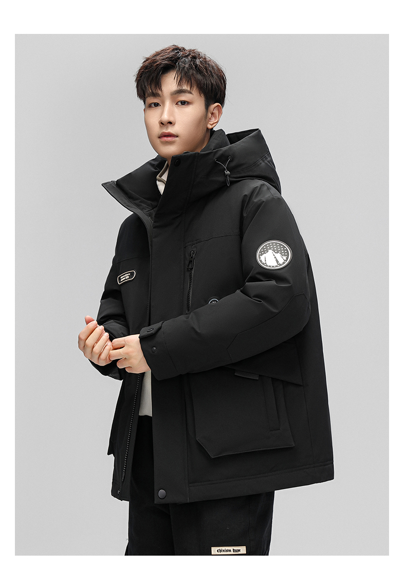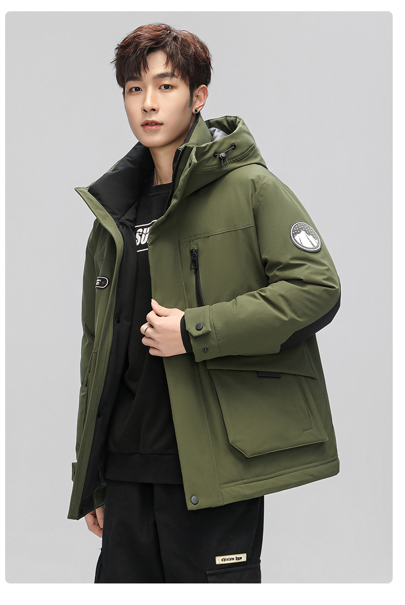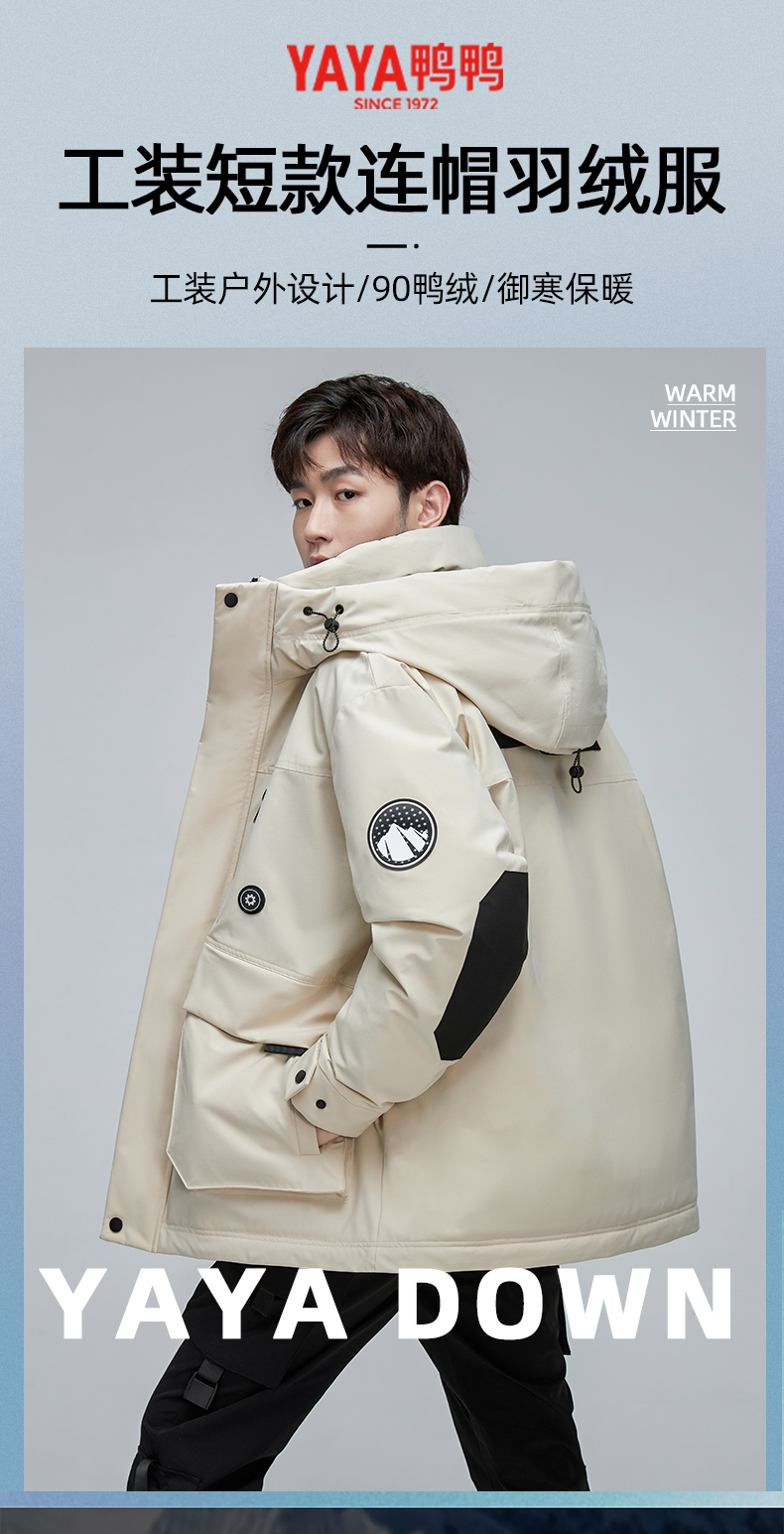 스타 왕이보와 같은 스타일의 덕다운 재킷, 겨울용 커플 두꺼운 후드 작업복, 남녀 공용 짧은 덕다운 재킷