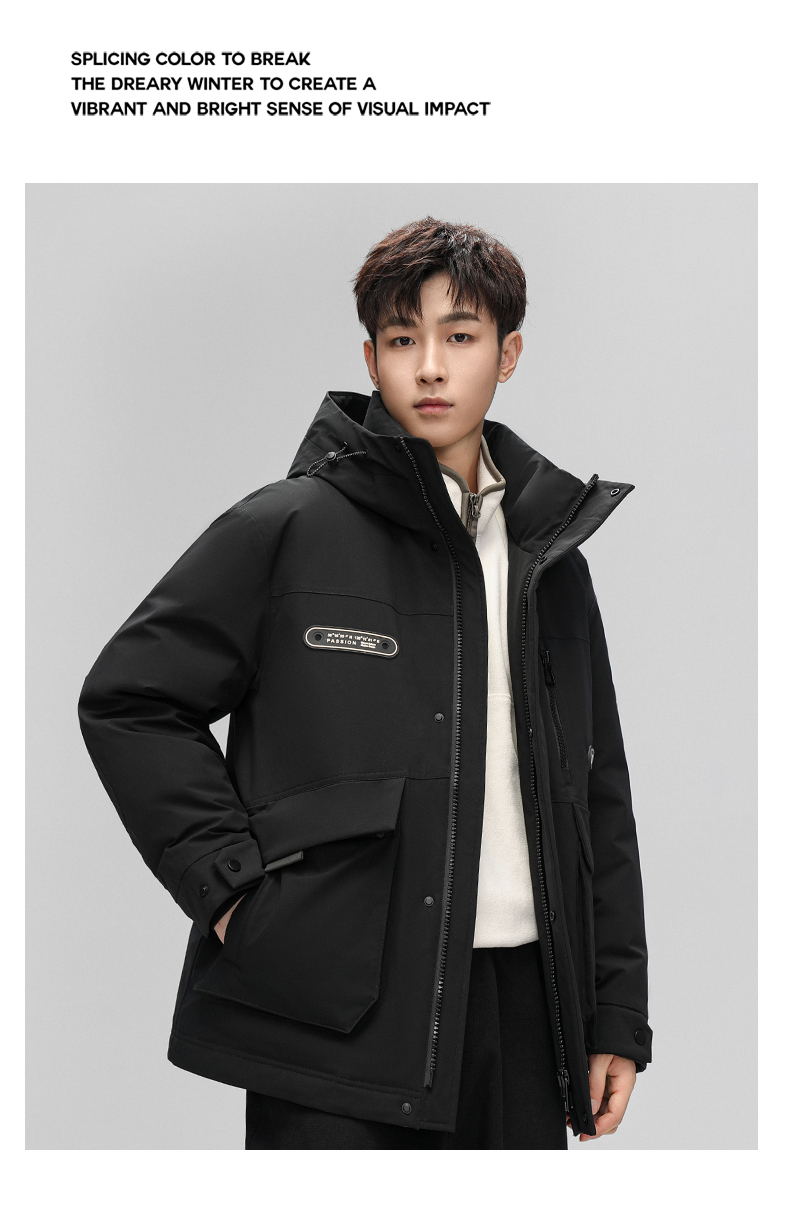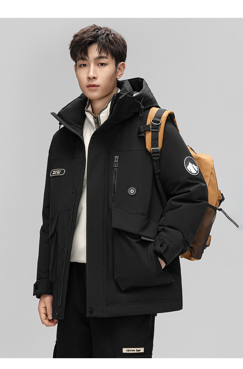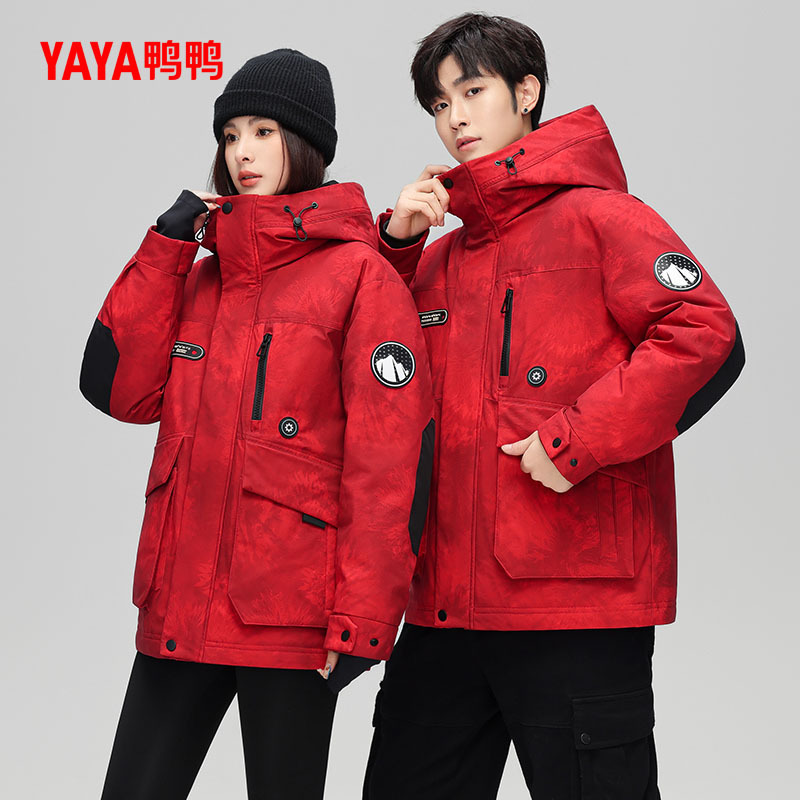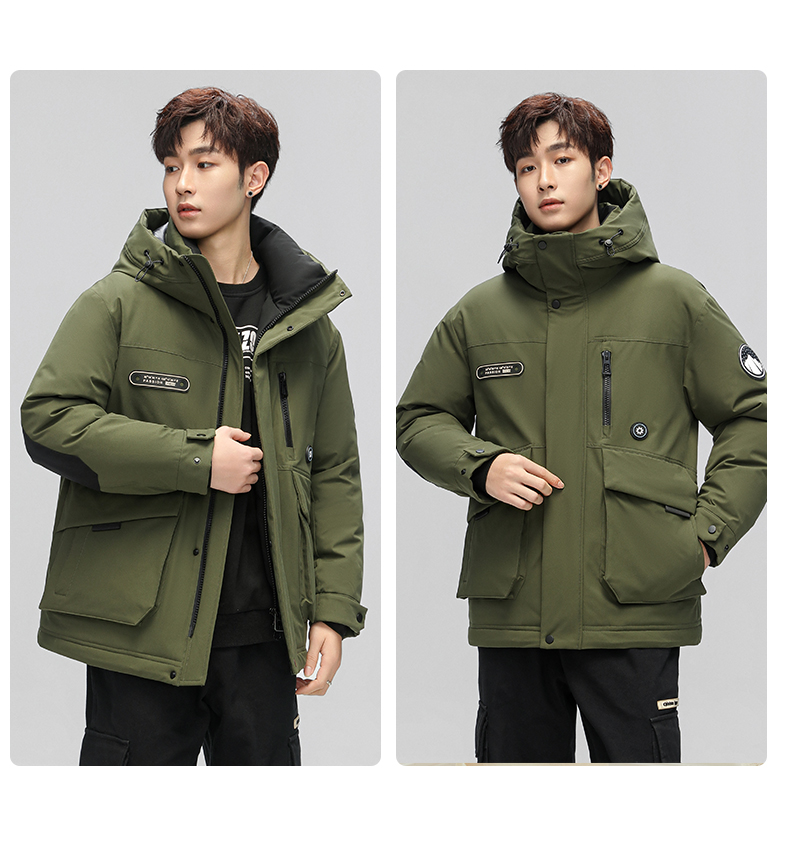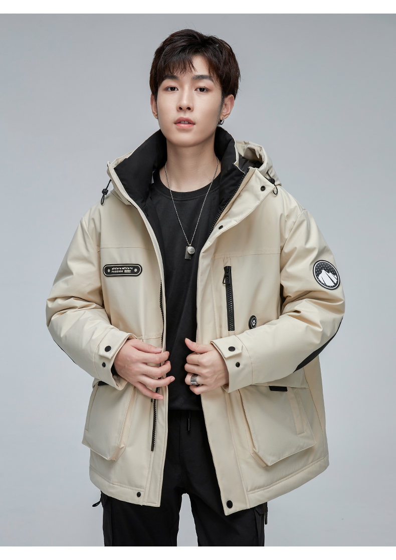 스타 왕이보와 같은 스타일의 덕다운 재킷, 겨울용 커플 두꺼운 후드 작업복, 남녀 공용 짧은 덕다운 재킷