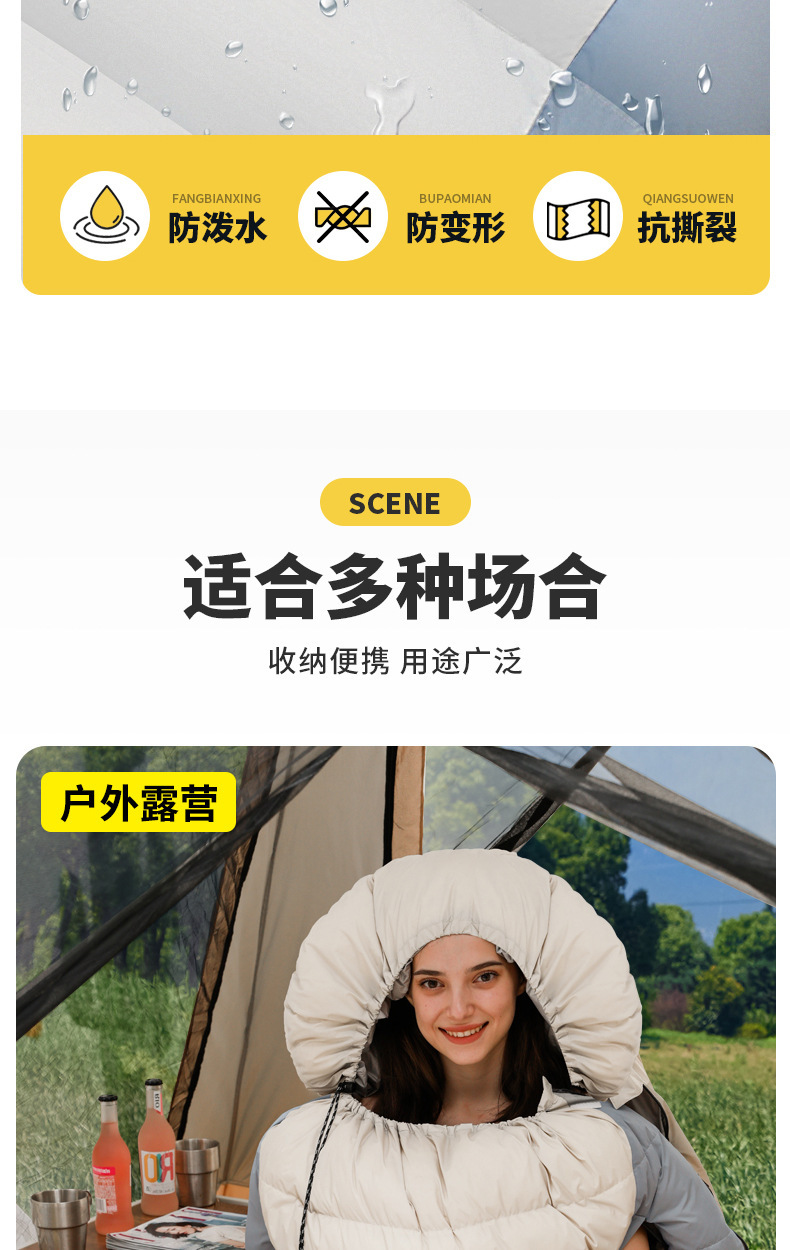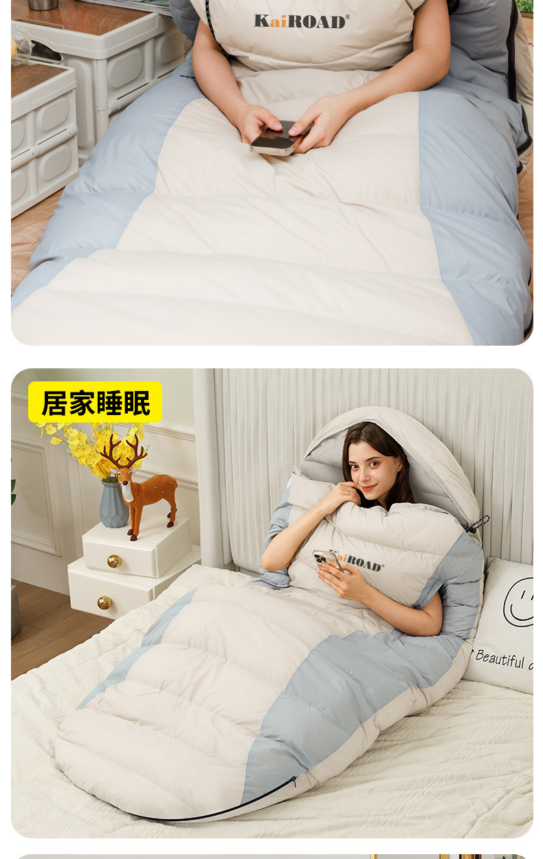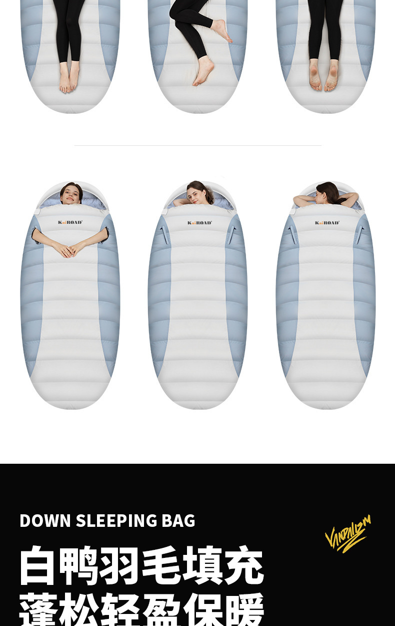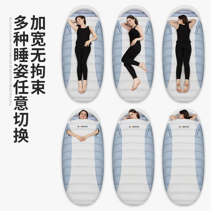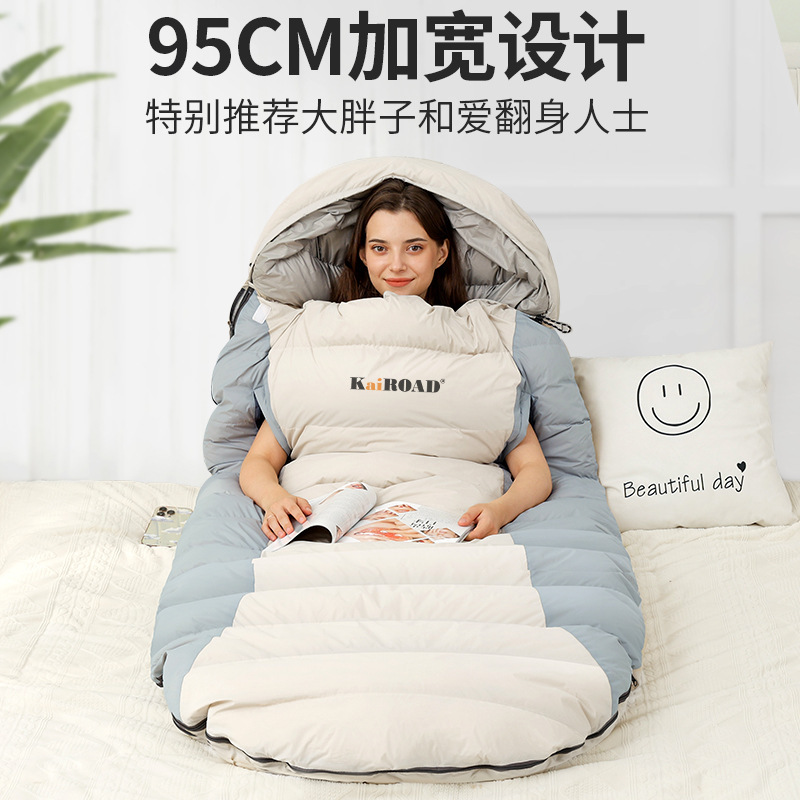 도달 다운 모피 침낭 계란 모양의 넓은 침낭 성인 캠핑 야외 따뜻한 대형 잠금 따뜻한