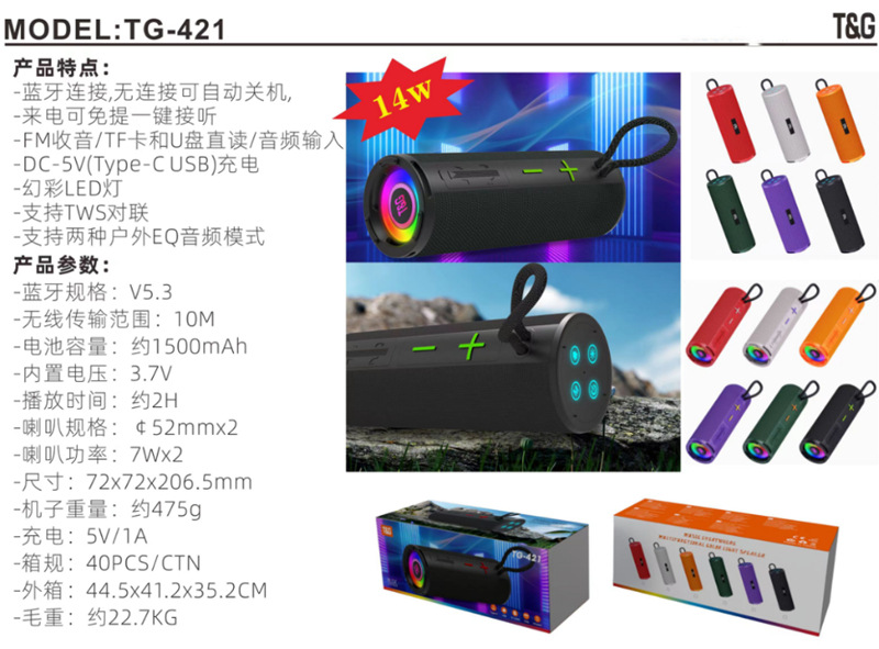 New tg421 대기등 블루투스 스피커 휴대용 무선 서브우퍼 오디오 고출력 미니 휴대용 스피커