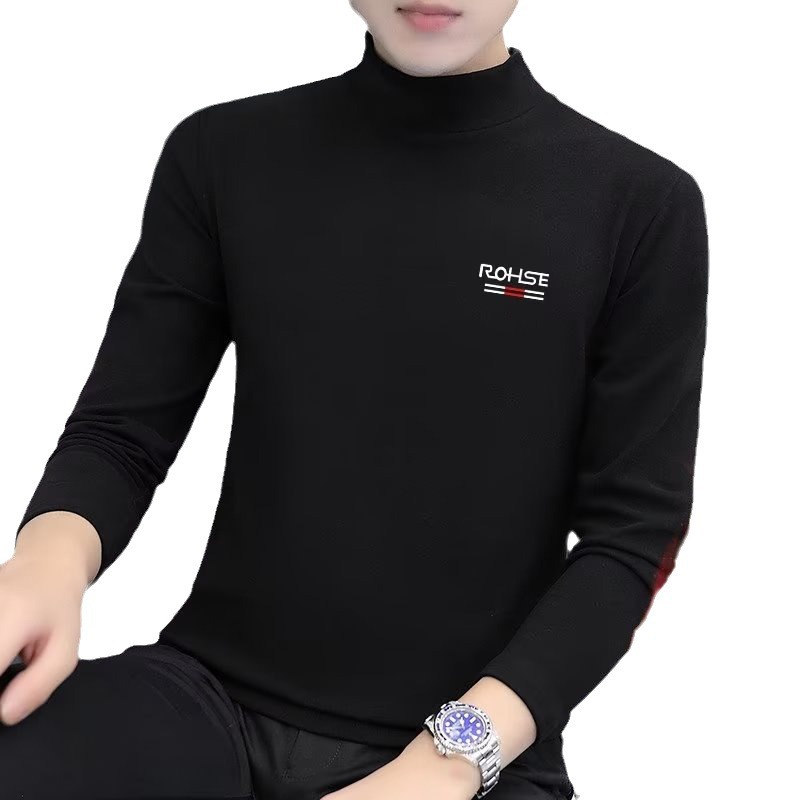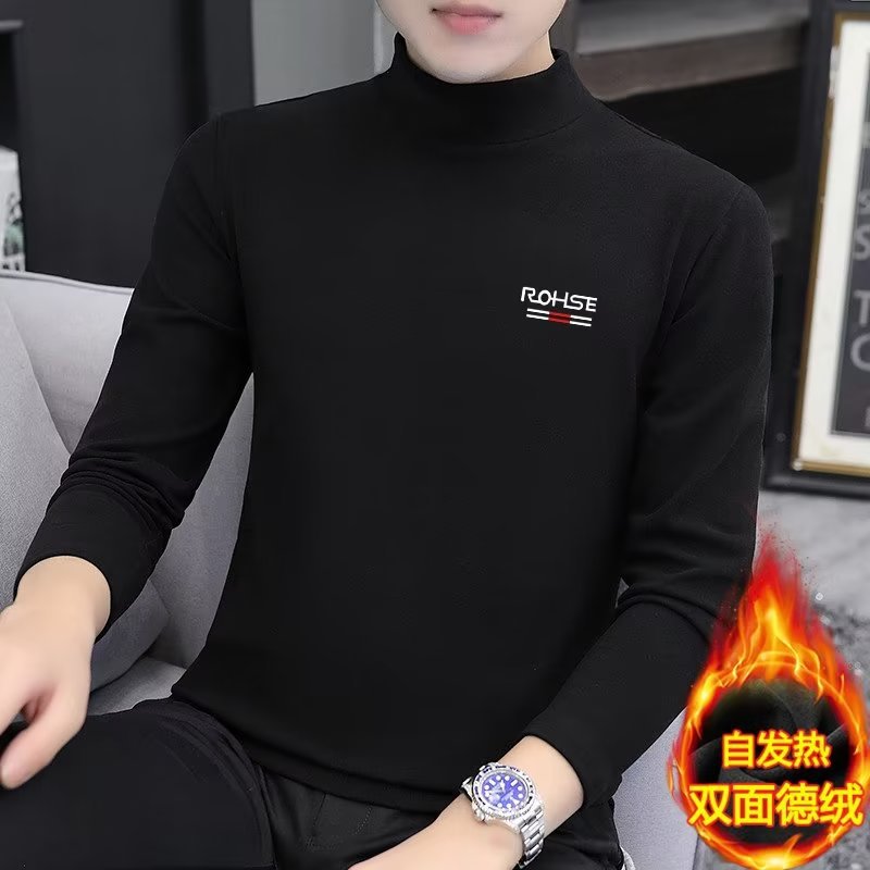 세미 하이 칼라 베이스 셔츠 남성용 기모 티셔츠 겨울 따뜻한 베이스 셔츠 양면 벨벳 탑 긴팔 남성 티셔츠
