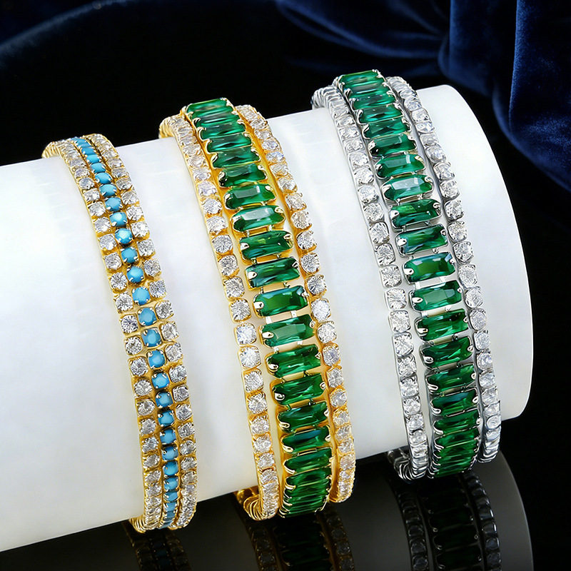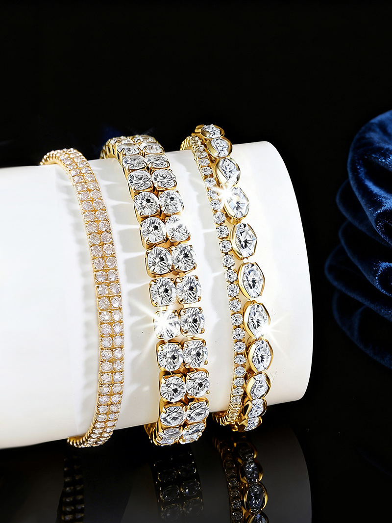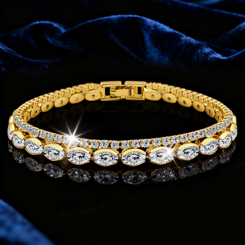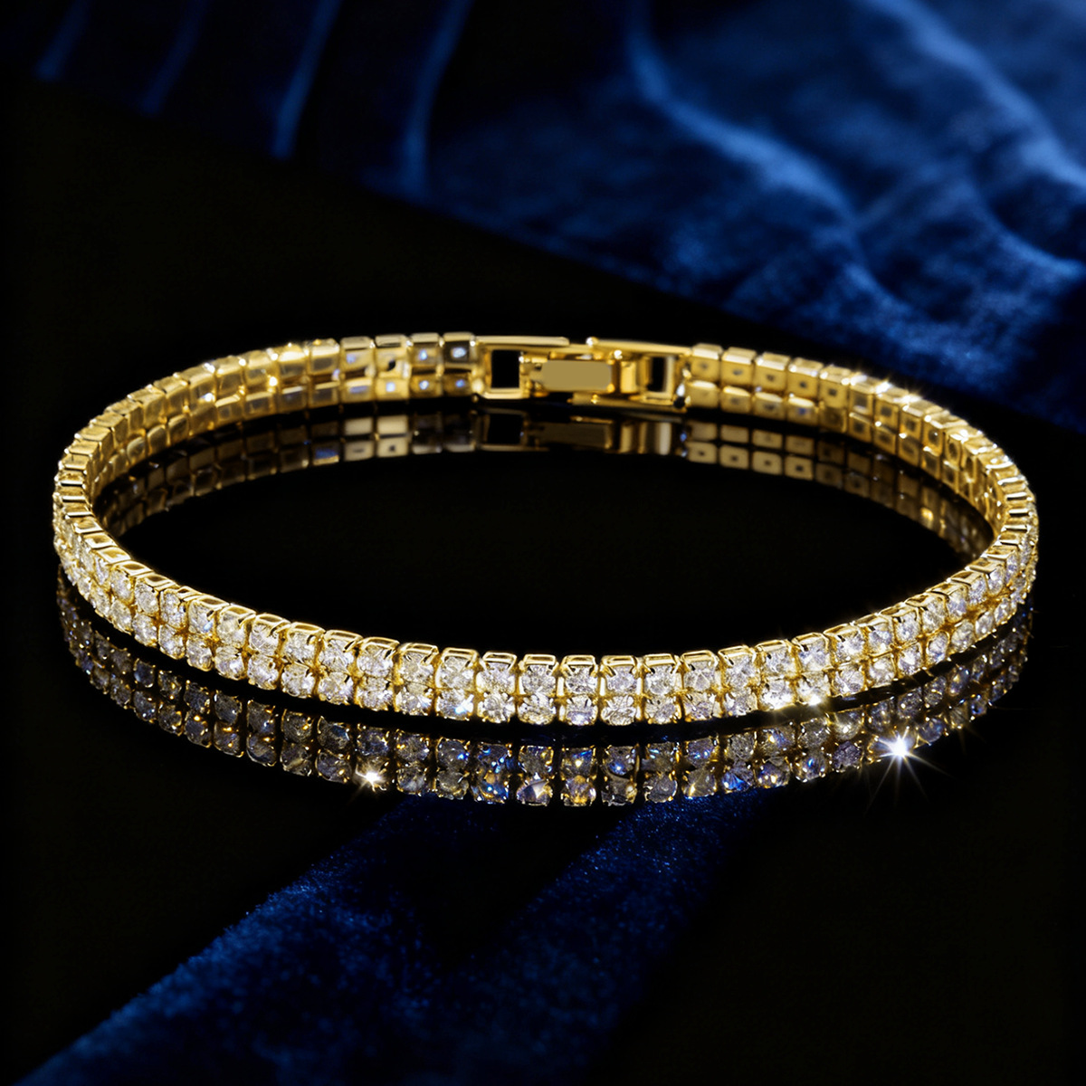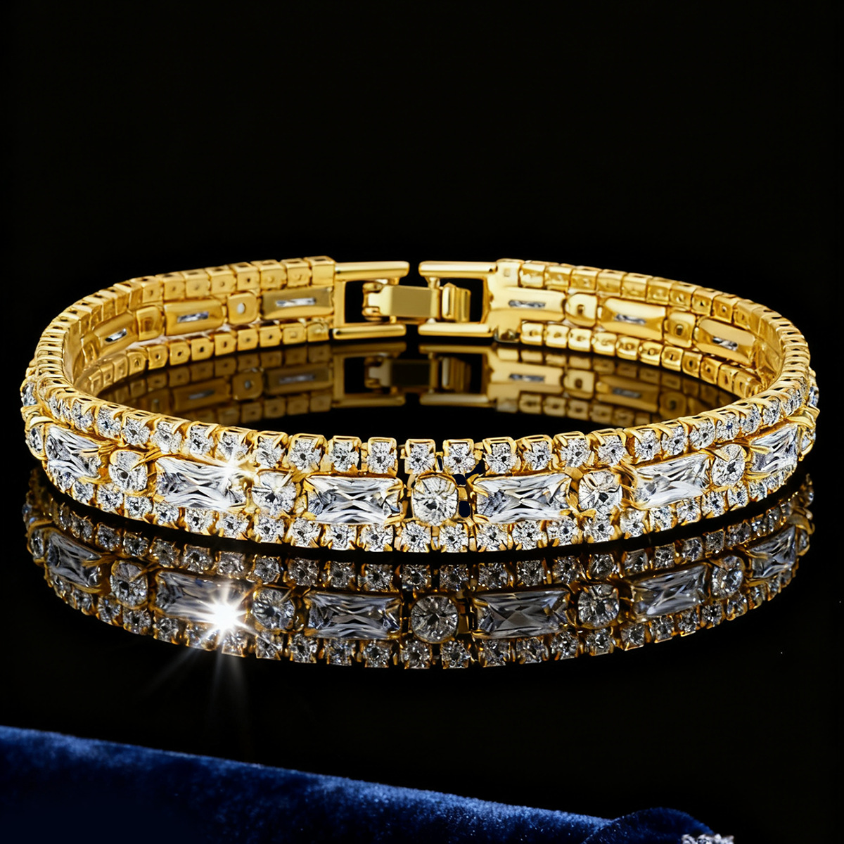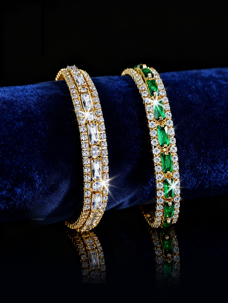 크로스보더 체인 유럽 및 미국 스타일의 이중 테니스 체인 팔찌, 남녀공용 패션 인기 상품, 3중 풀 다이아몬드 주얼리