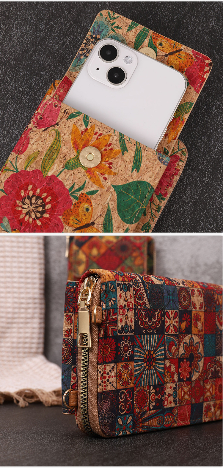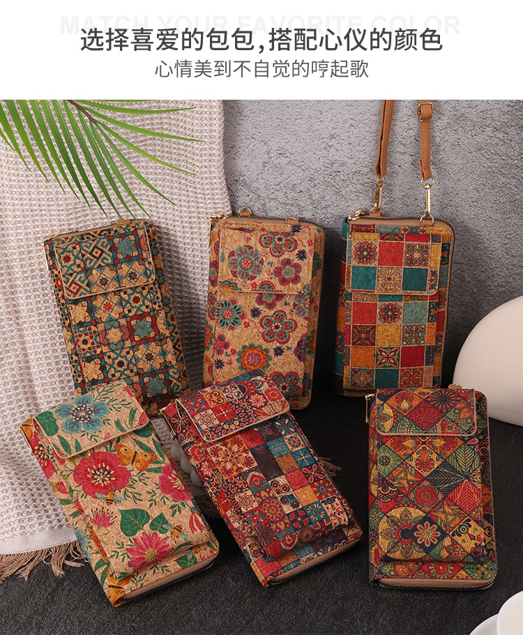 국경 간 패션 레트로 보헤미안 여성 크로스 바디 백 다기능 대용량 휴대 전화 가방 PU 우드 그레인 백