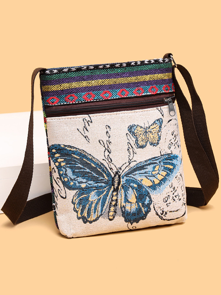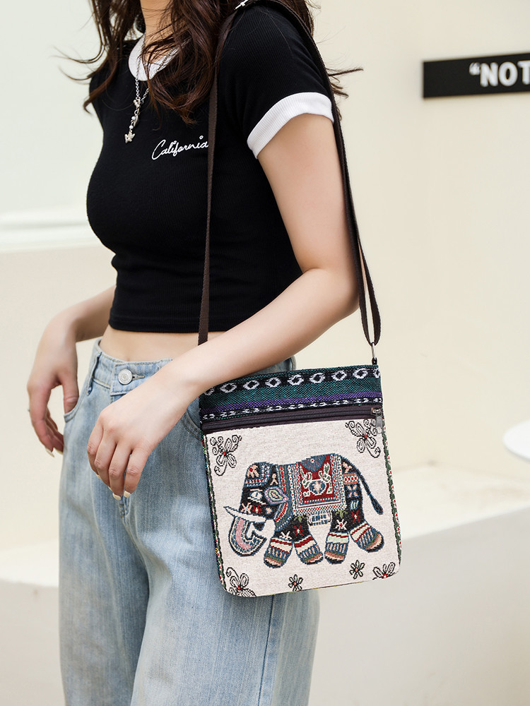 작은 가방 여성용 크로스 바디 백 캔버스 가방 짜기 중국 스타일 귀여운 모든 매치 숄더 백 휴대 전화 가방 Miao 작은 사첼