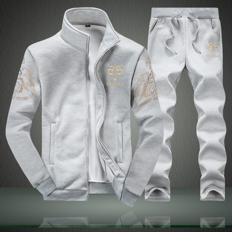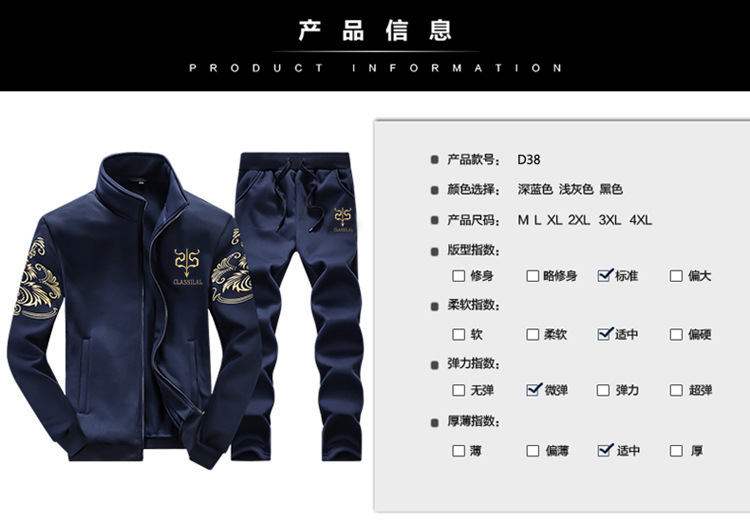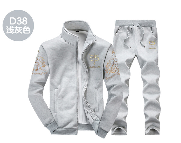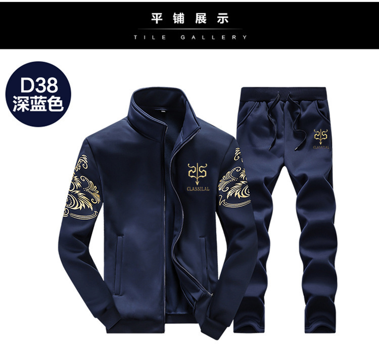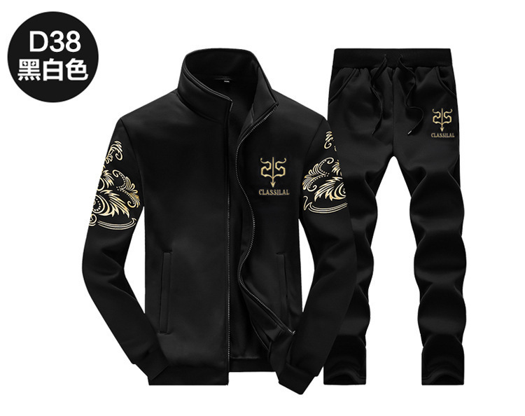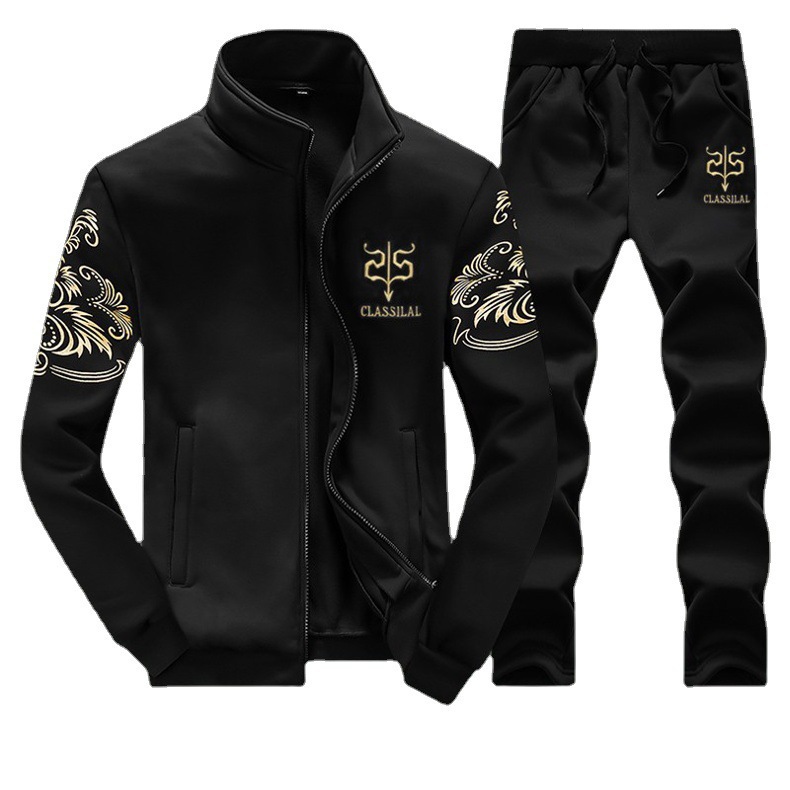 봄과 가을 재고 남성 캐주얼 스포츠 세트 남성 자수 코트 바지 투피스 세트 공장 남성 의류 도매