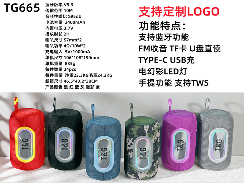 새로운 TG665 블루투스 스피커 무선 야외 서브 우퍼 오디오 패브릭 카드 휴대용 대용량 스피커