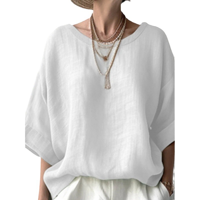 2026년 여름 신상품, 단색 편안한 캐주얼 라운드넥 면마 소재, 드롭숄더 루즈핏 슬림핏 여성용 빅사이즈 셔츠