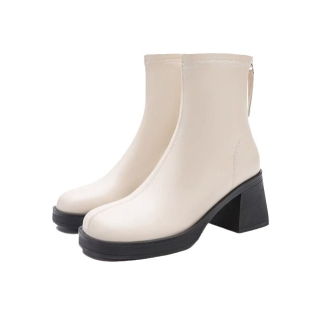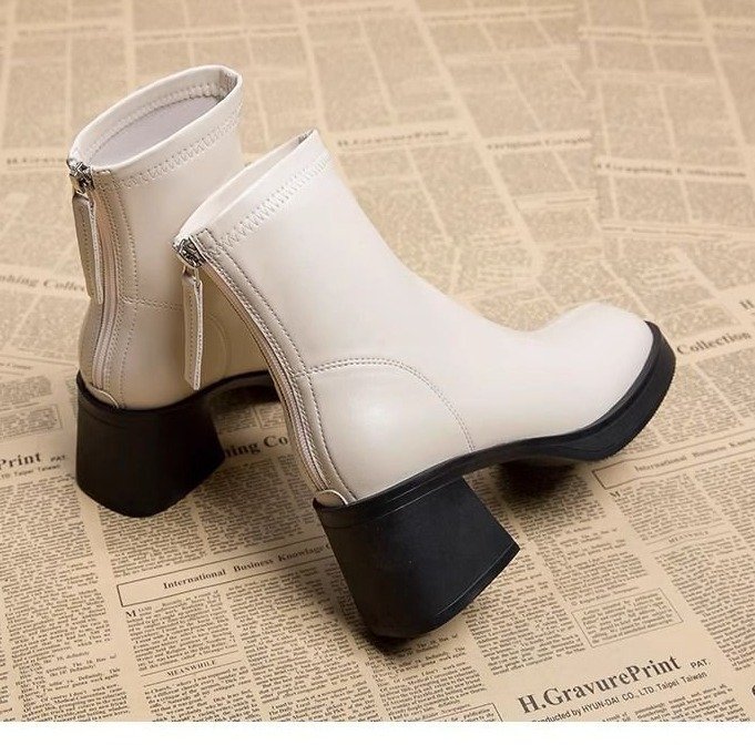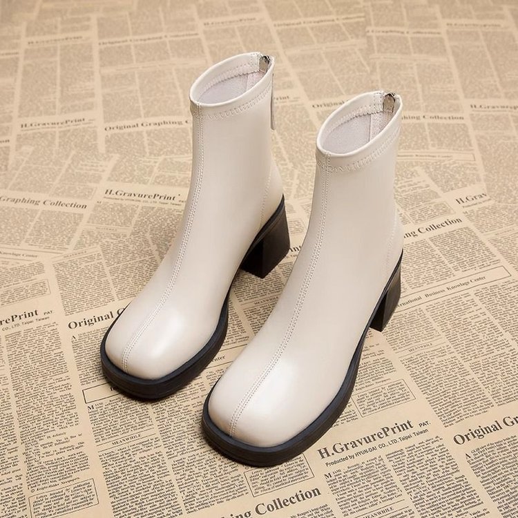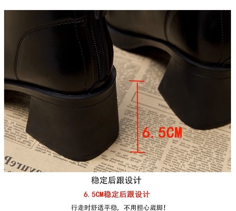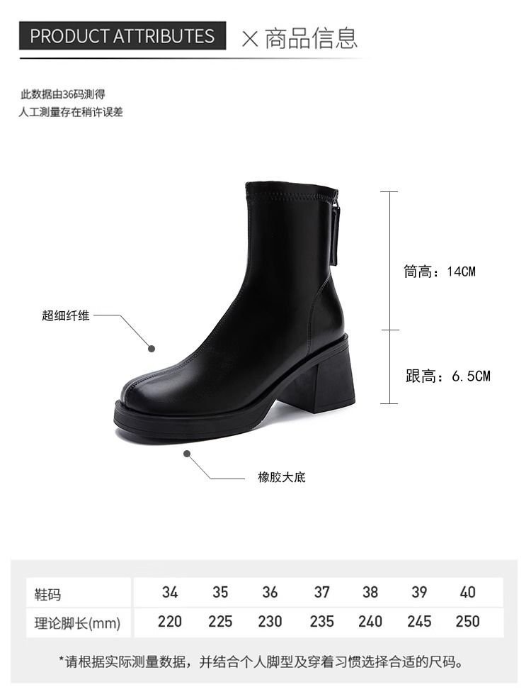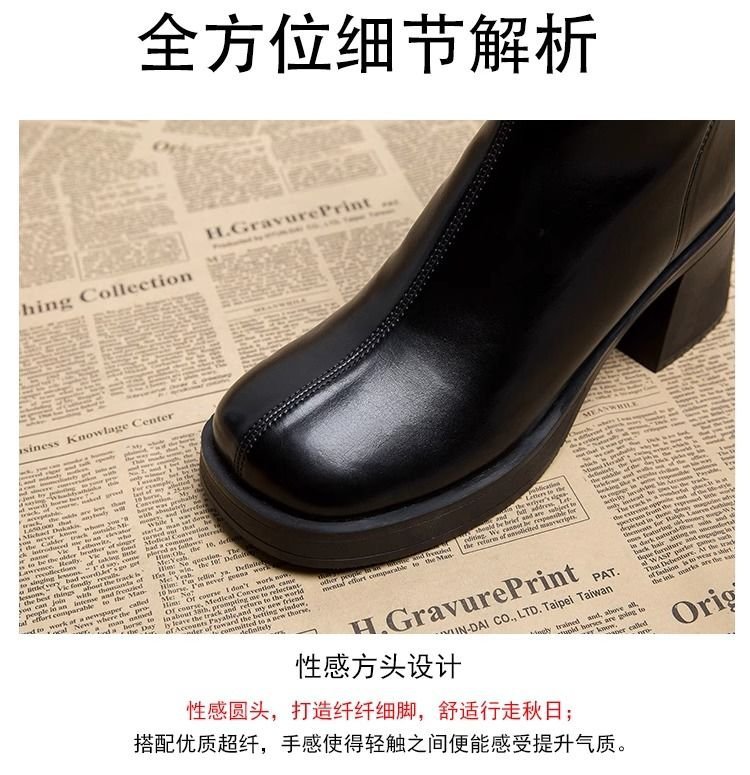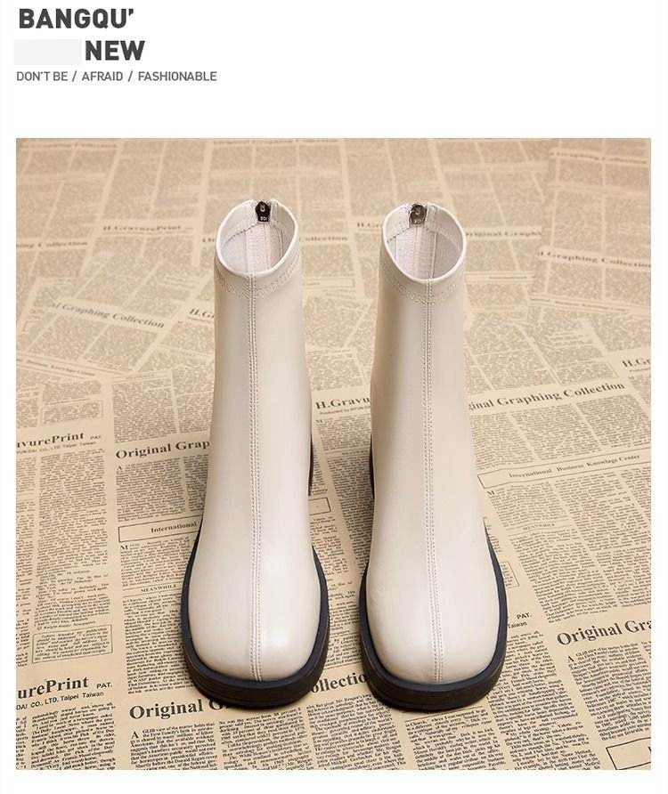 마틴 부츠 여성용 2025 가을 겨울 신상 영국 스타일 중간 굽 여성 부츠 패션 라운드 토 뒷지퍼 중간 길이 슬림 부츠