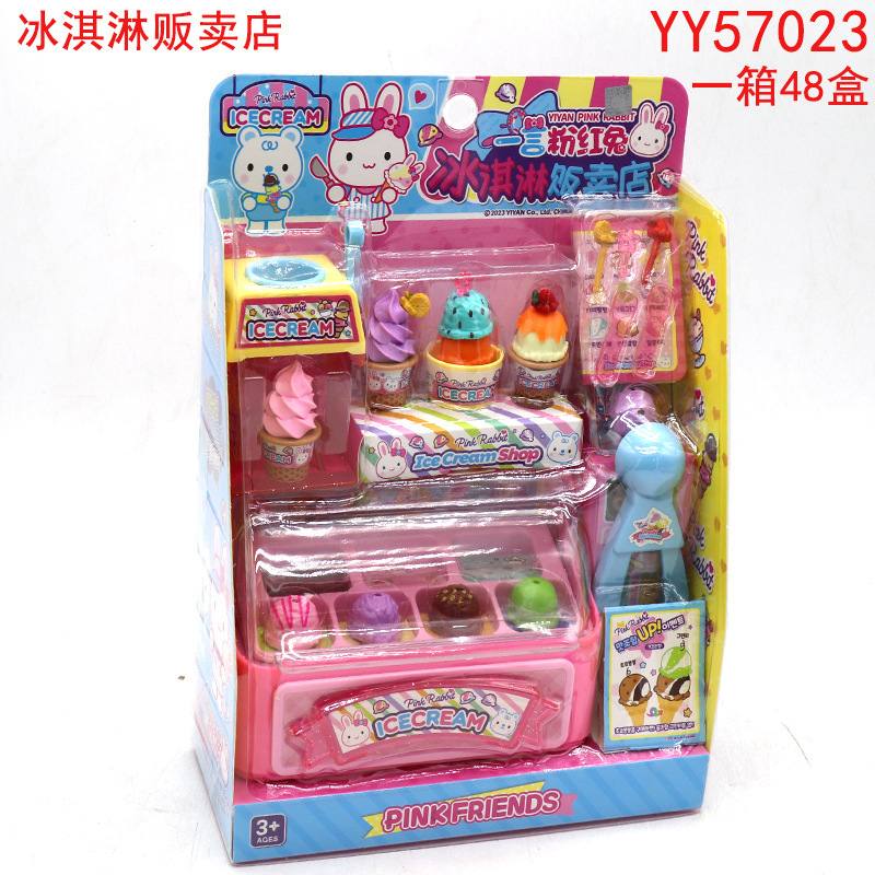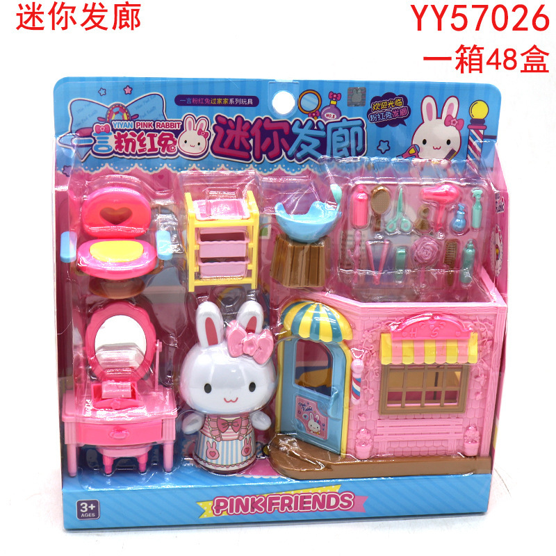 한 단어 핑크 토끼 미니 코티지 아이스크림 딜러 토끼 침실 주방 소녀 놀이 집 장난감