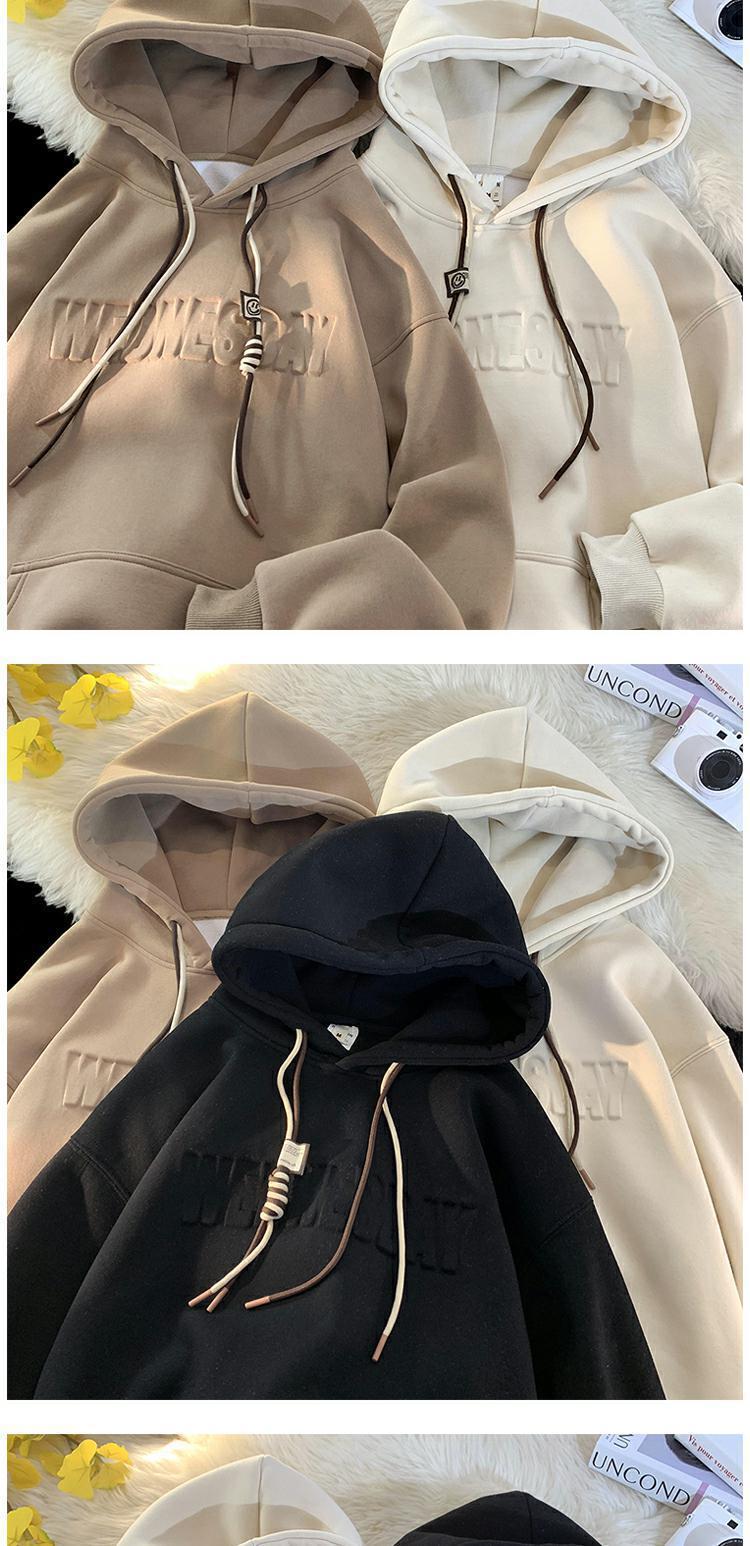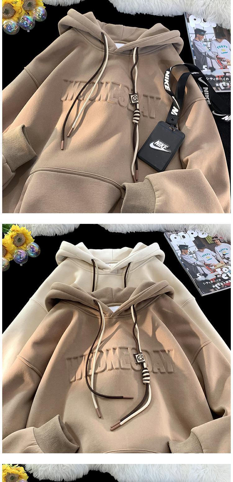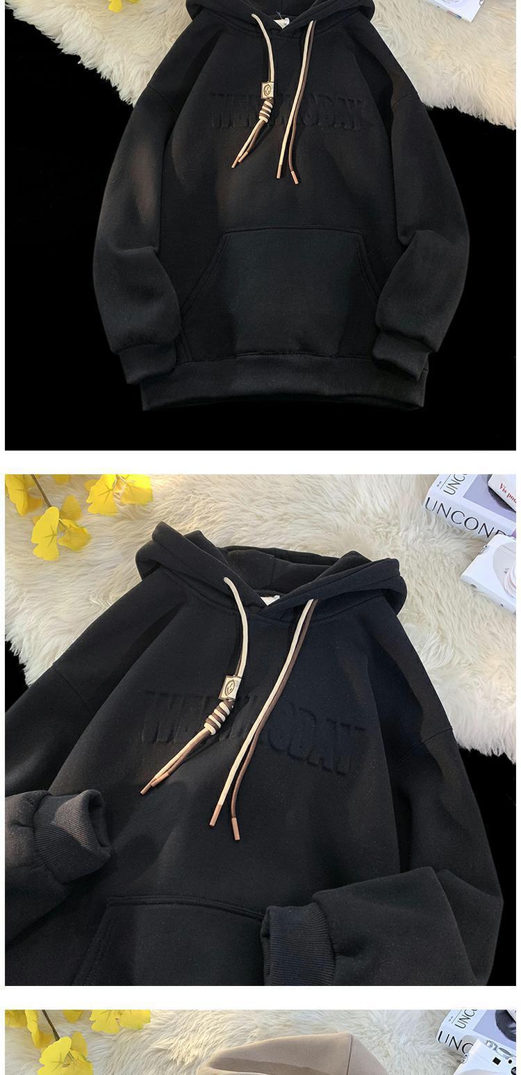 유럽과 미국 헤비급 스웨터 남자의 겨울 기모 두껍게 500g 스틸 씰 코트 가을과 겨울 분위기 하이 스트리트 후드 옷