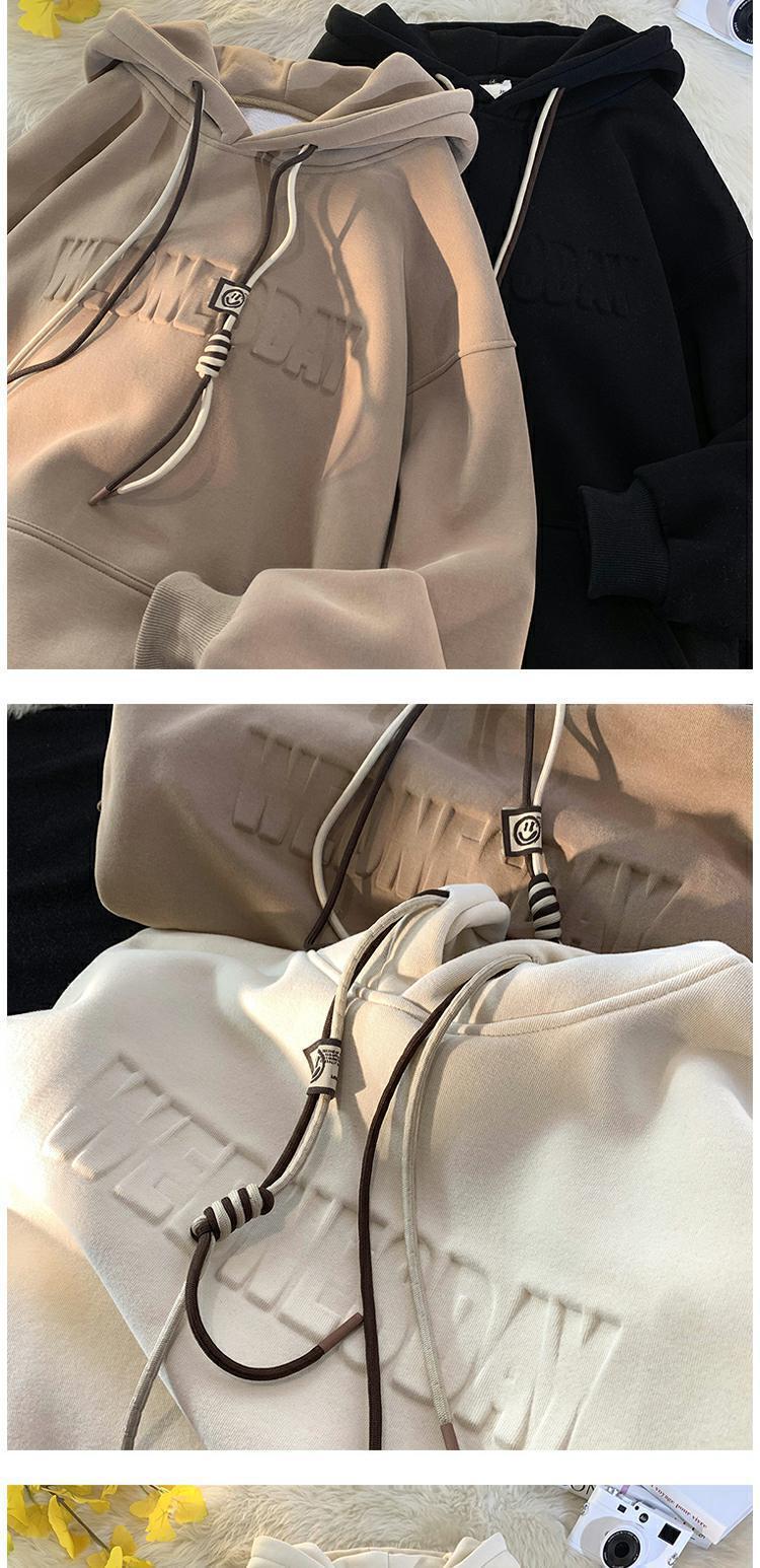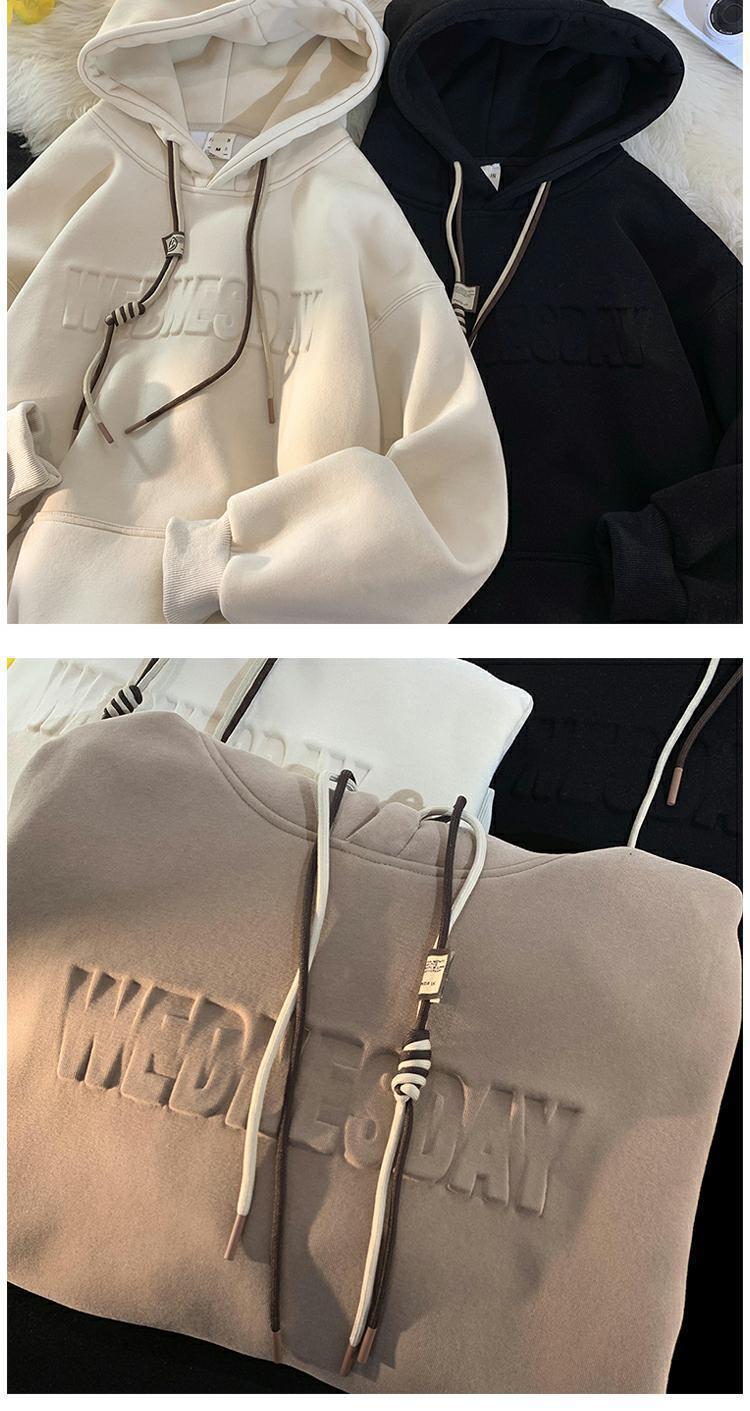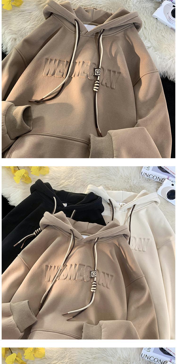 유럽과 미국 헤비급 스웨터 남자의 겨울 기모 두껍게 500g 스틸 씰 코트 가을과 겨울 분위기 하이 스트리트 후드 옷
