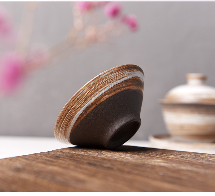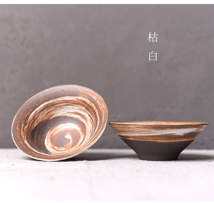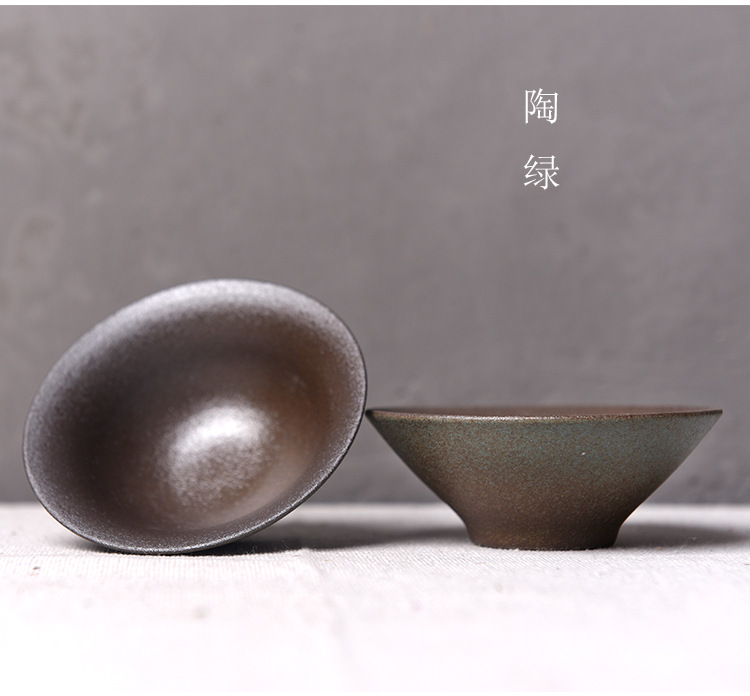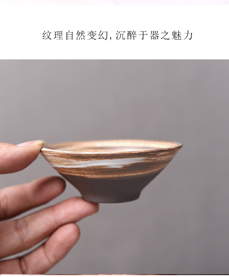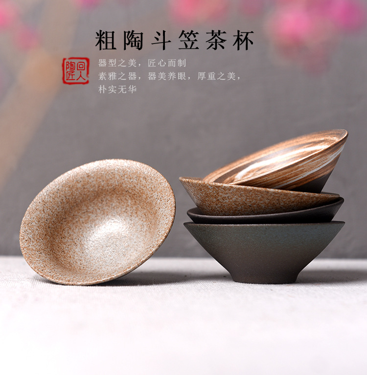 일본식 레트로 대나무 모자 찻잔 Pu'er 찻잔 쿵푸 차 세트 차 시음 컵 한 잔 굵은 도자기 찻잔 찻그릇 도자기 컵