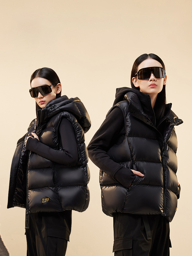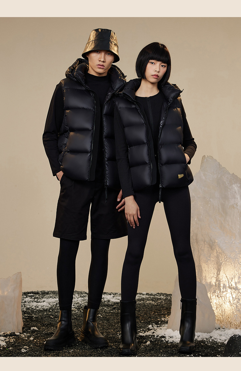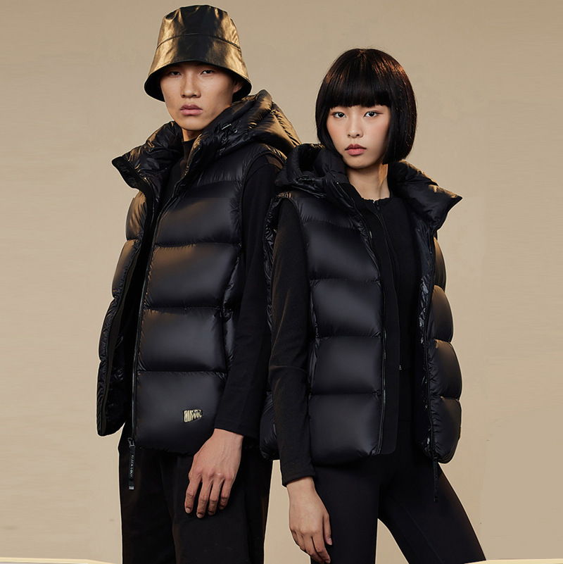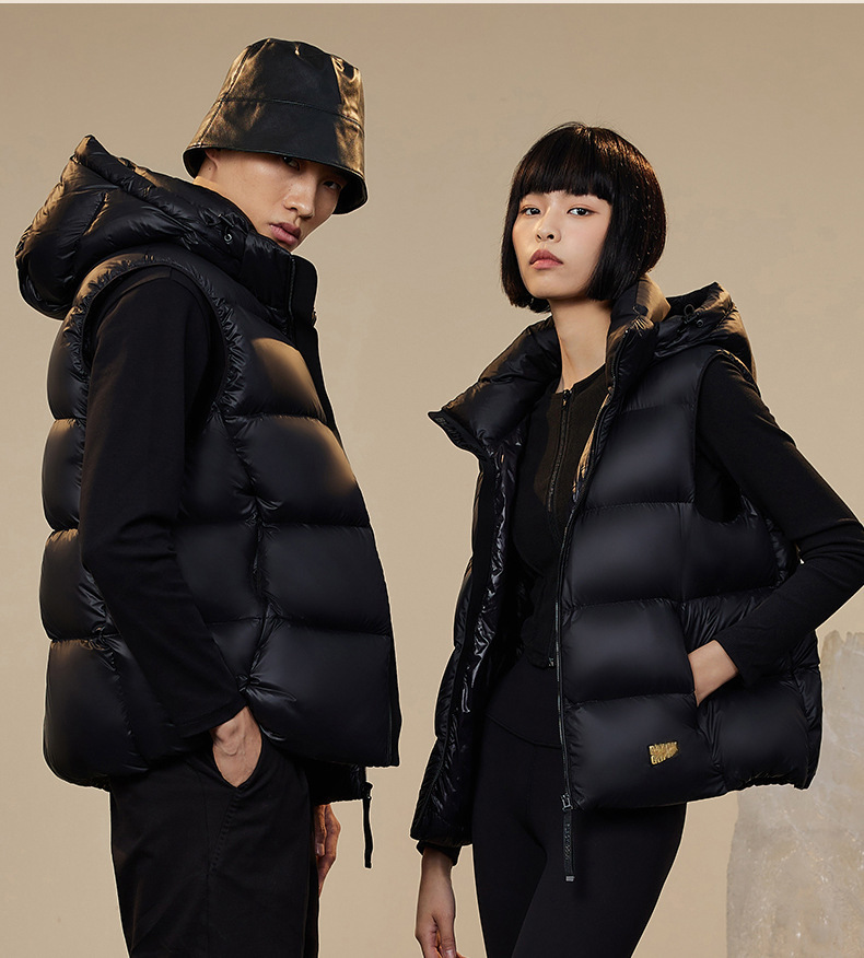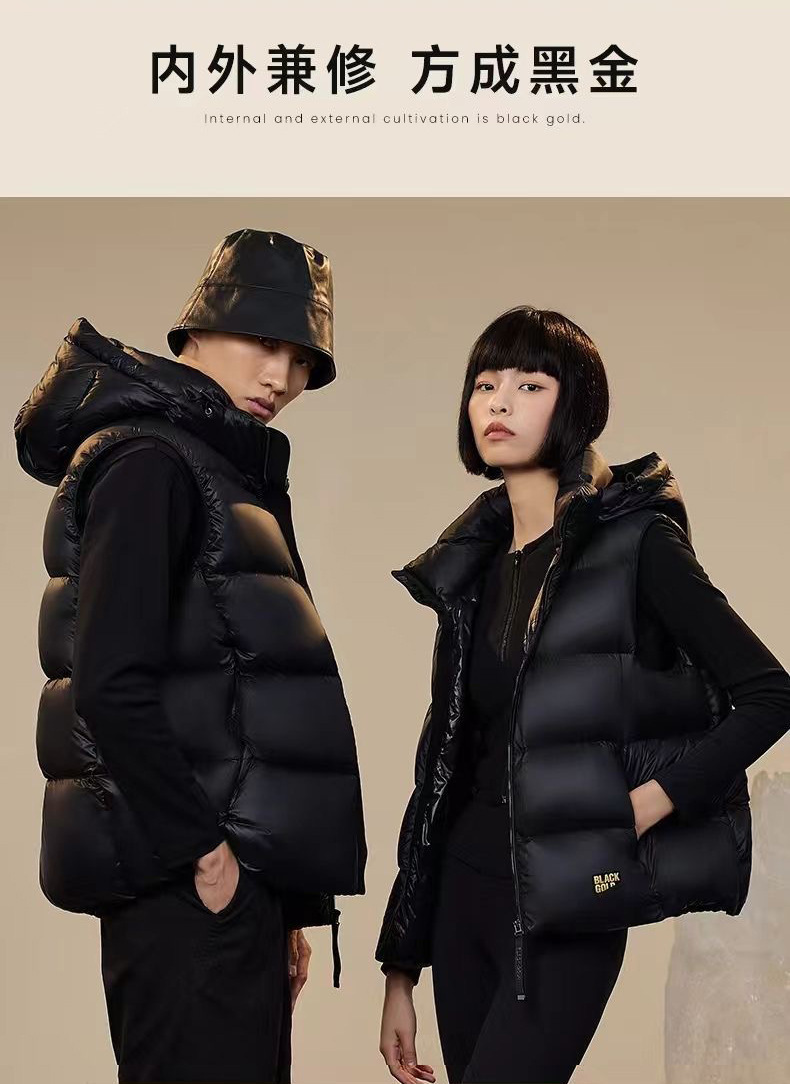 블랙 골드 다운 조끼, 자체 발열 기능 탑재, 2025년형 두꺼운 후드 커플용 다운 조끼, 외투용 조끼