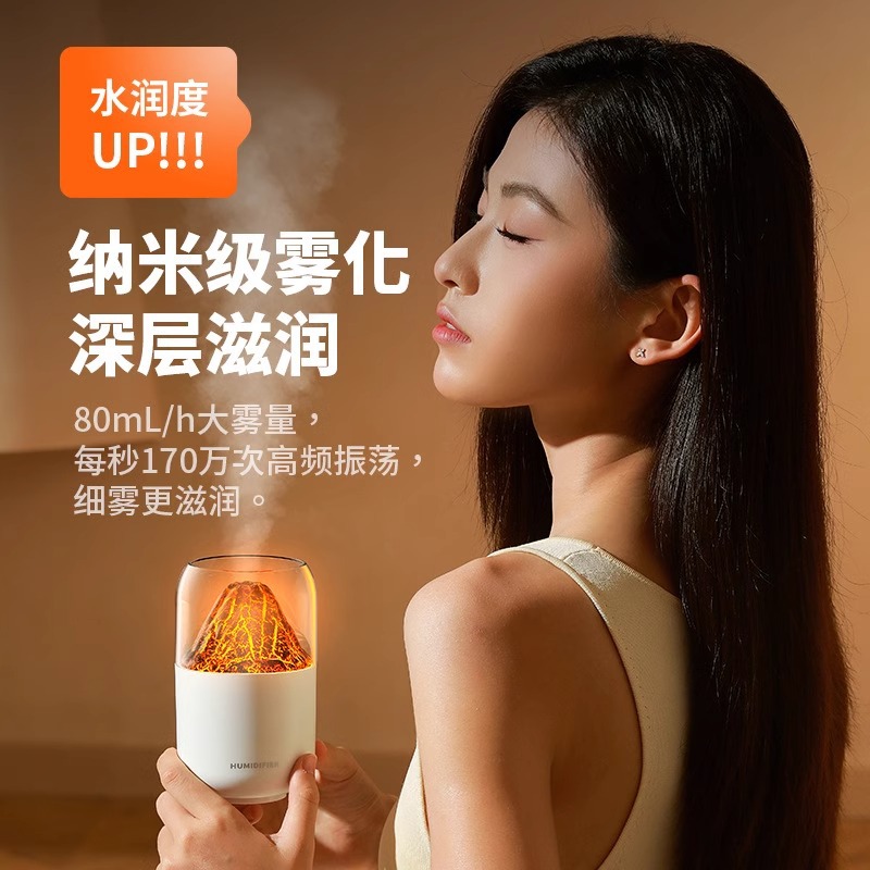 화산 가습기 작은 선물 프로모션 홈 침실 다채로운 분위기 빛 도매 작은 데스크탑 불꽃 가습기