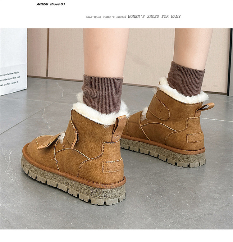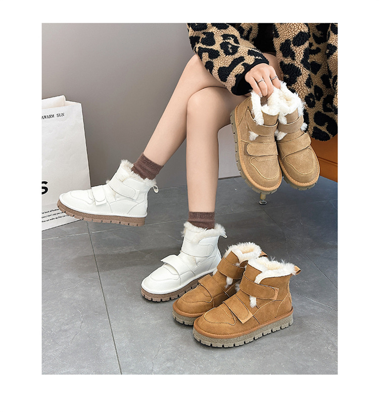 여성용 스노우 부츠 겨울 숏부츠 인기 여성 모델 2022년 신상 겨울 두꺼운 보온 미끄럼 방지 플러스 벨벳 여성용 면화 신발