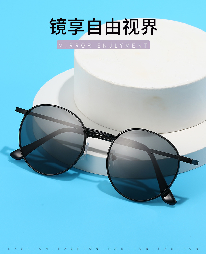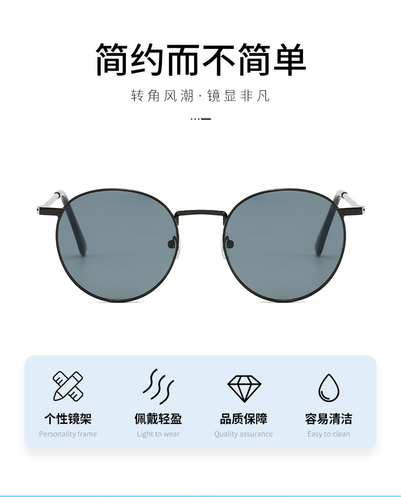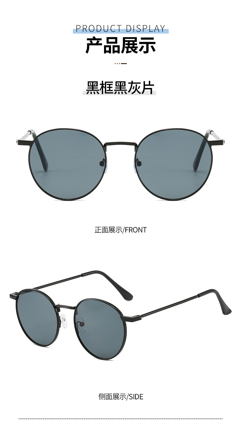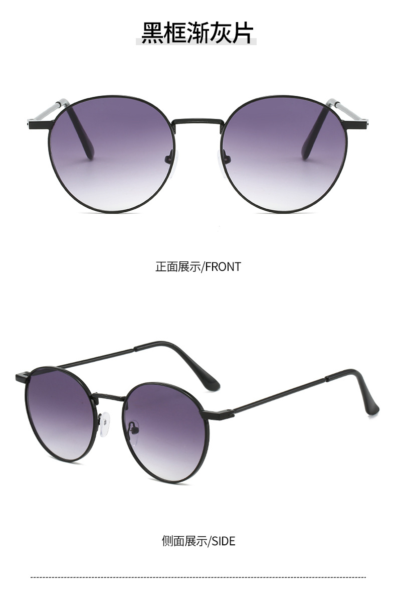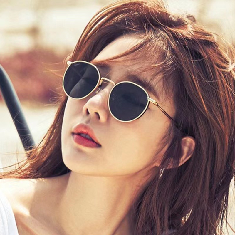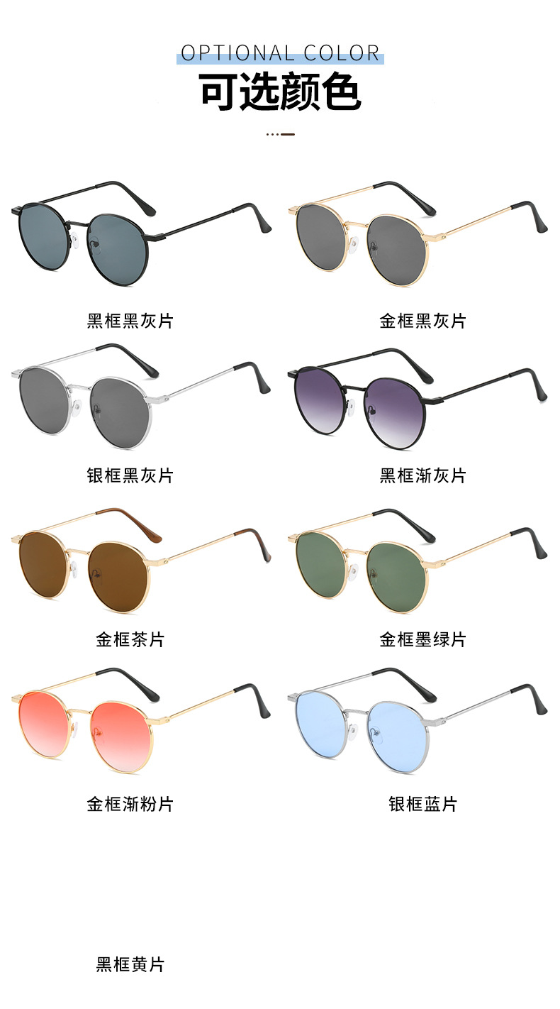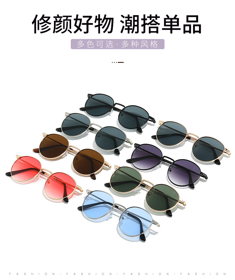 새로운 금속 선글라스 레트로 타원형 스트리트 셰이드 선글라스 작은 자외선 차단 선글라스를 보여주는 공항 장식 얼굴