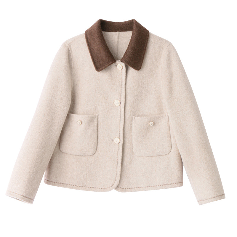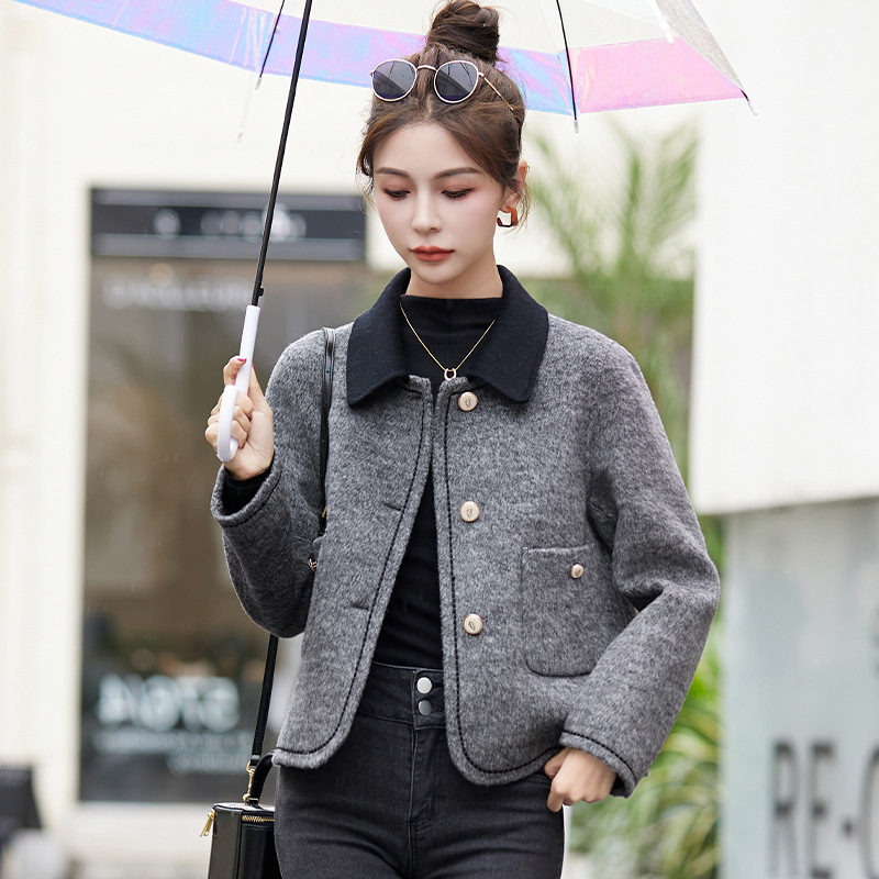 여성용 양면 캐시미어 숏 모직 코트 2026 가을 겨울 신상 우아한 스타일의 작은 체형을 위한 샤넬 스타일 모직 코트