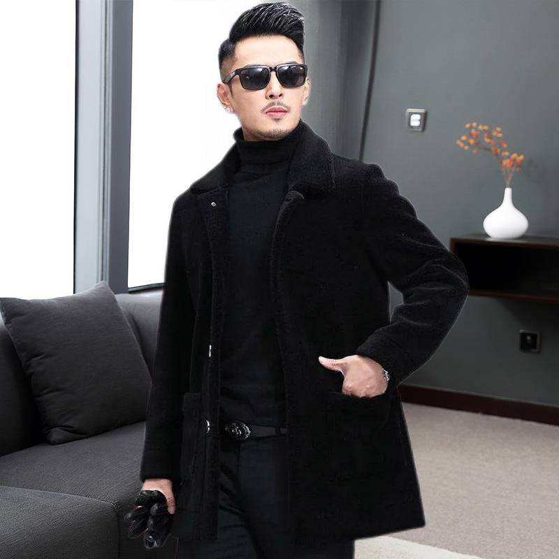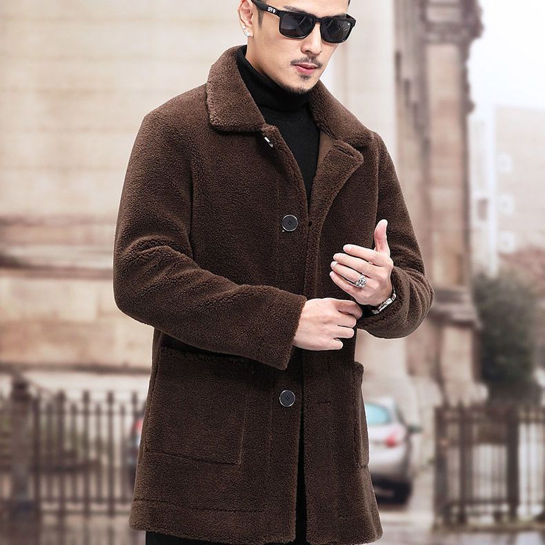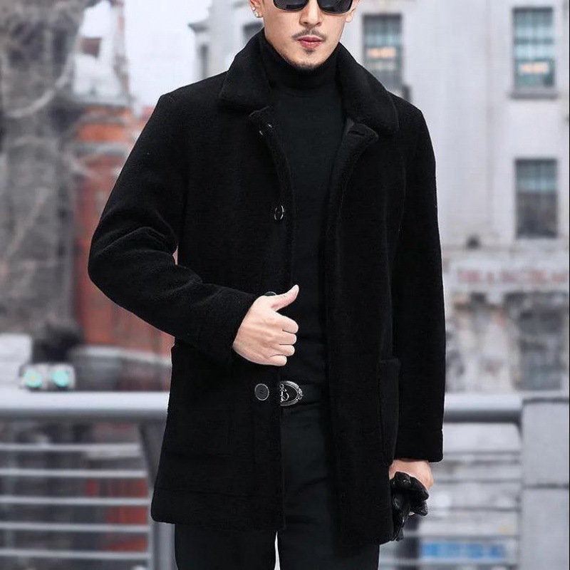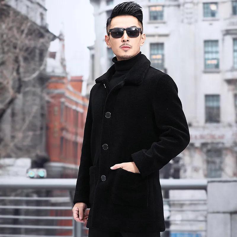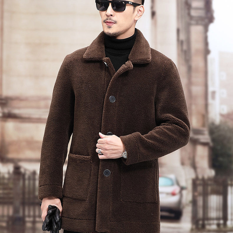 모조 양고기 양털 가을과 겨울 새로운 재킷 옷깃 짧은 모조 모피 코트 남성용 양고기 양털 패딩 코트 롱 코트