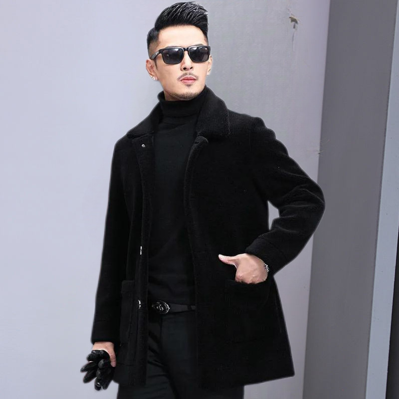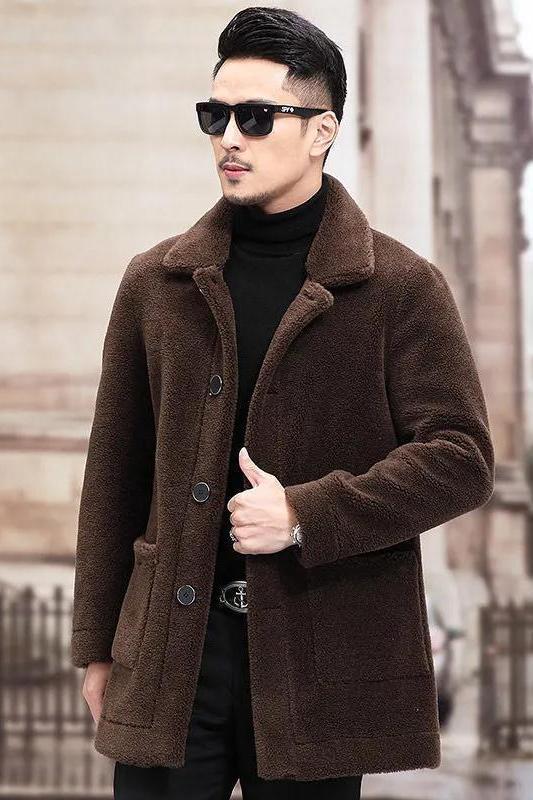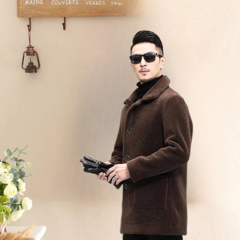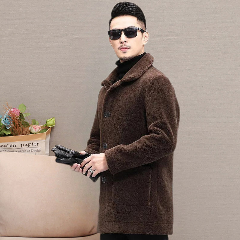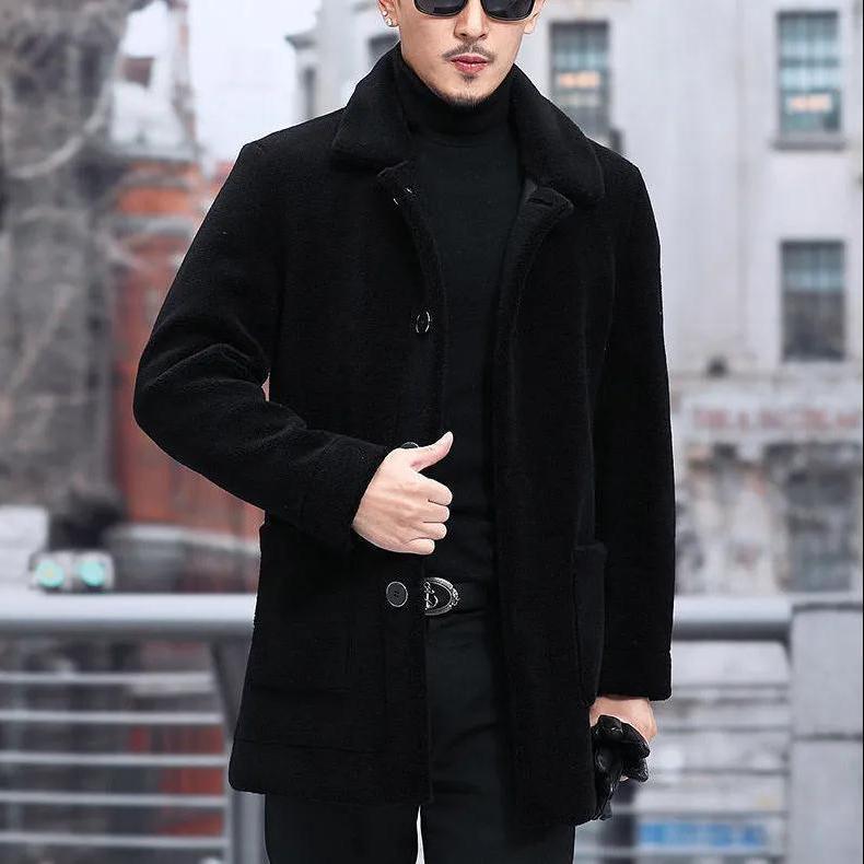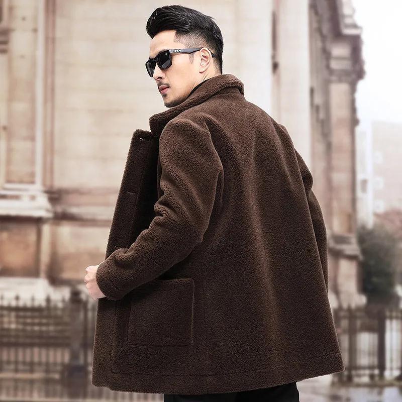 모조 양고기 양털 가을과 겨울 새로운 재킷 옷깃 짧은 모조 모피 코트 남성용 양고기 양털 패딩 코트 롱 코트