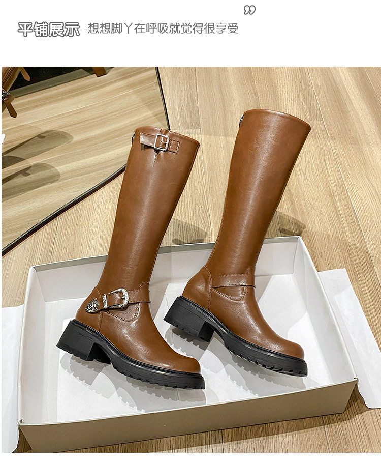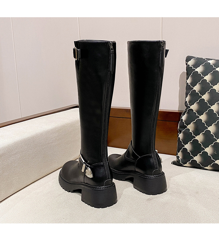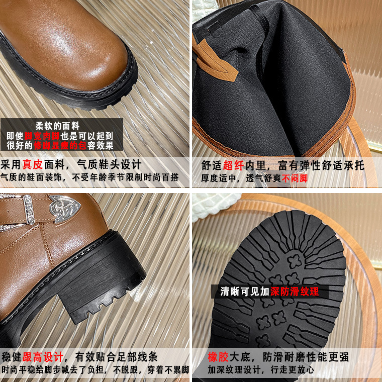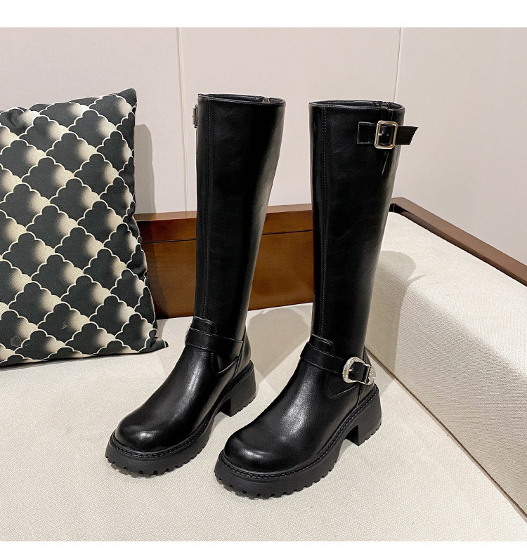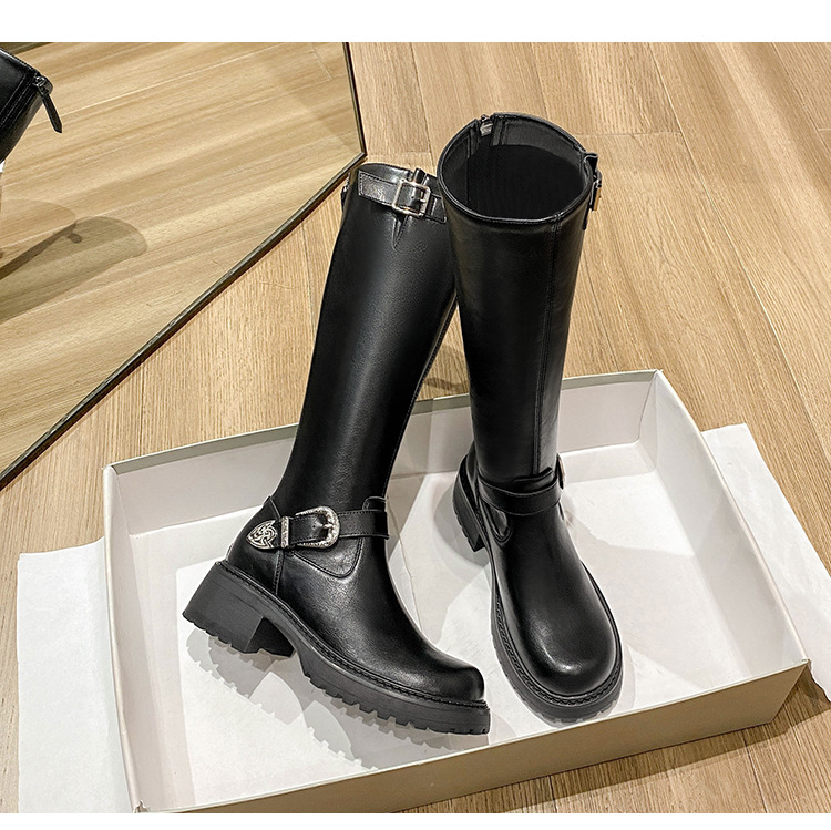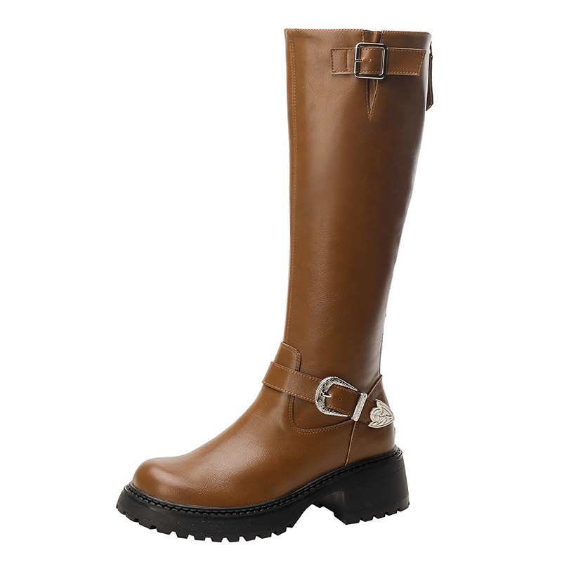여성용 나이트 부츠 2025 가을 겨울 신상 신발 다용도 두꺼운 밑창 서부 카우보이 부츠 레트로 두꺼운 굽 긴 가죽 부츠