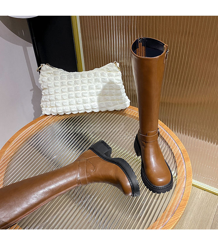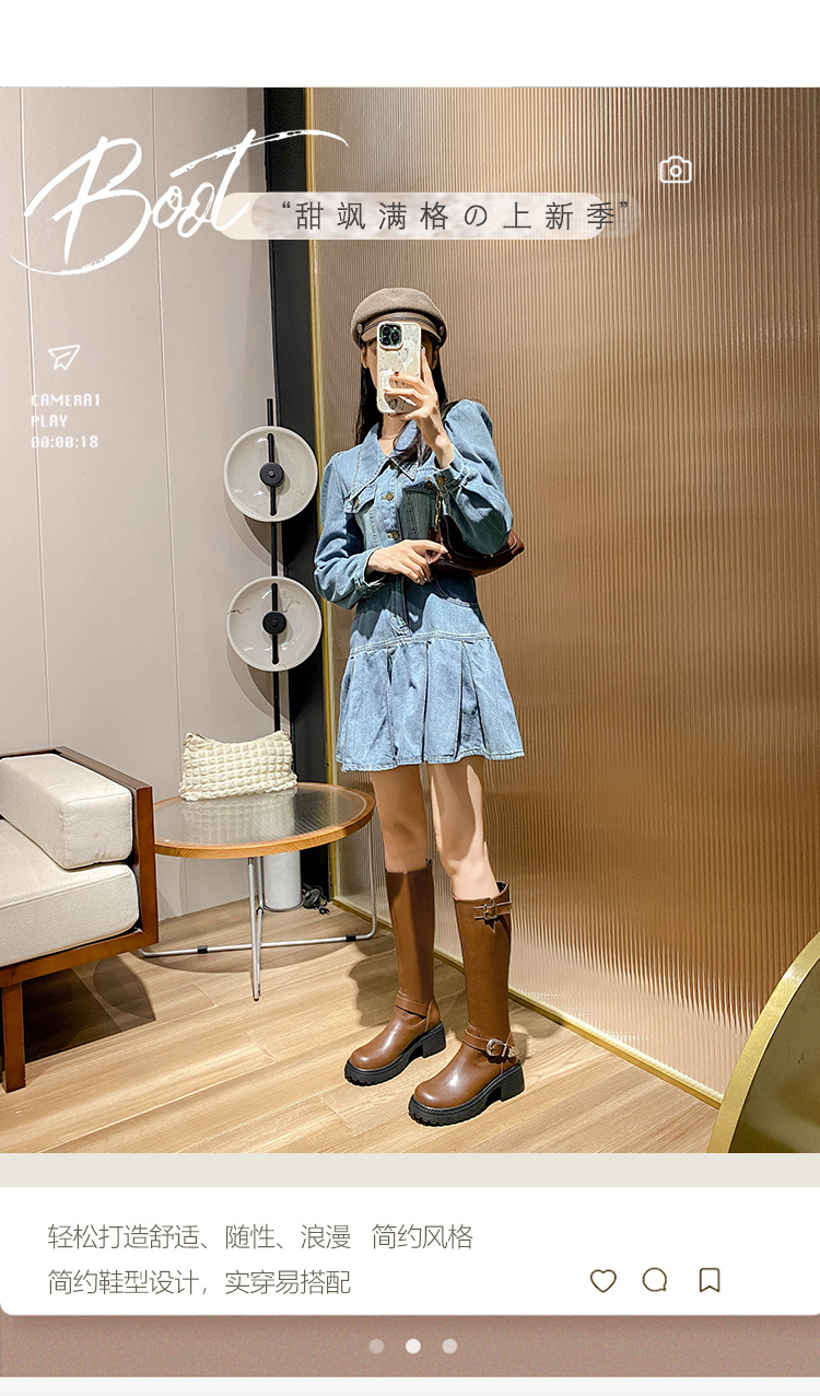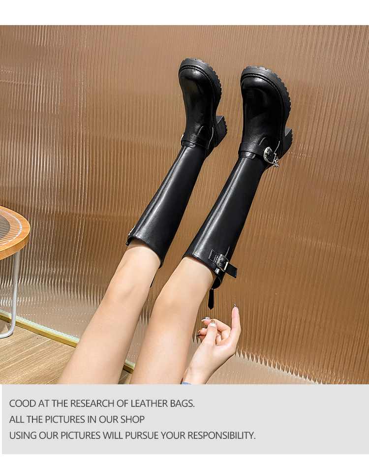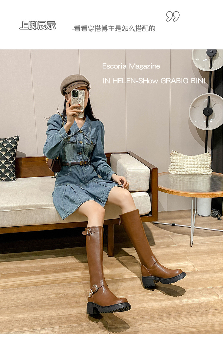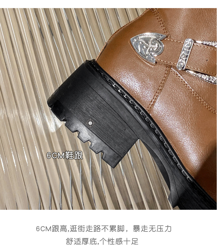 여성용 나이트 부츠 2025 가을 겨울 신상 신발 다용도 두꺼운 밑창 서부 카우보이 부츠 레트로 두꺼운 굽 긴 가죽 부츠
