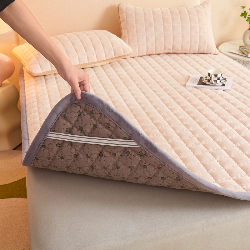 밀크 벨벳 매트리스 쿠션 가정용 겨울 기모 두꺼운 따뜻한 산호 벨벳 침대 커버 침대 시트 매트리스 쿠션 이불