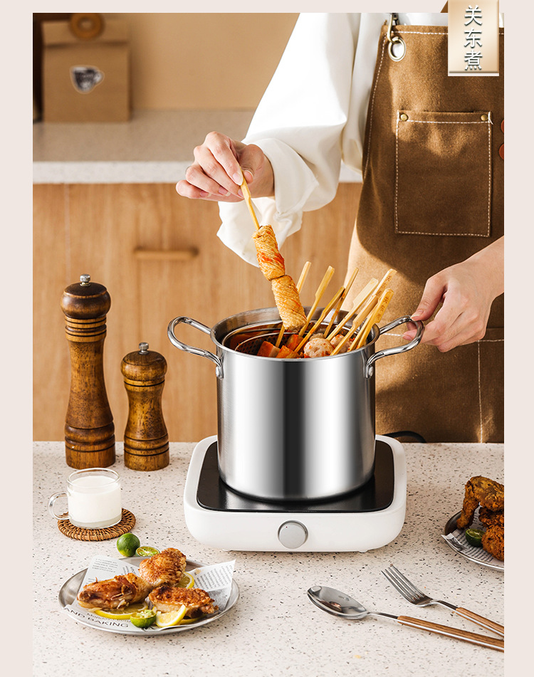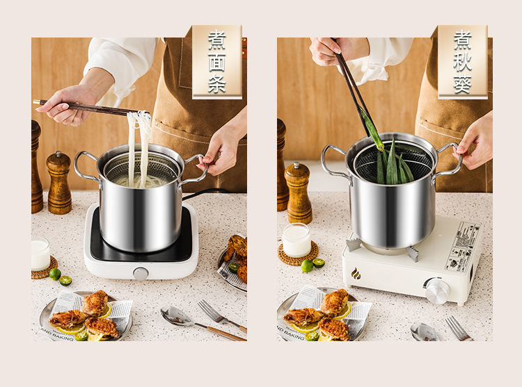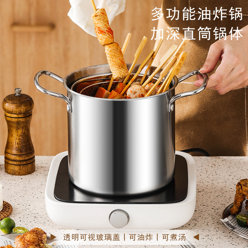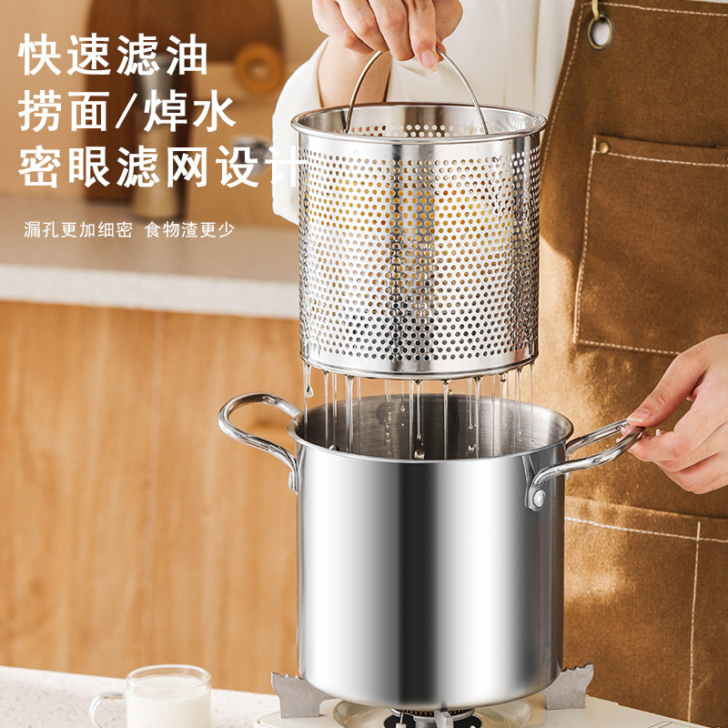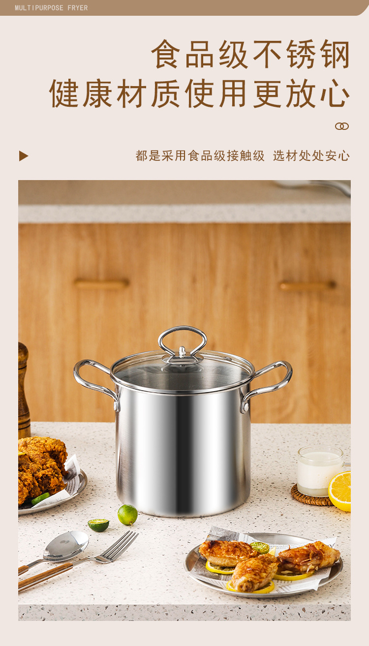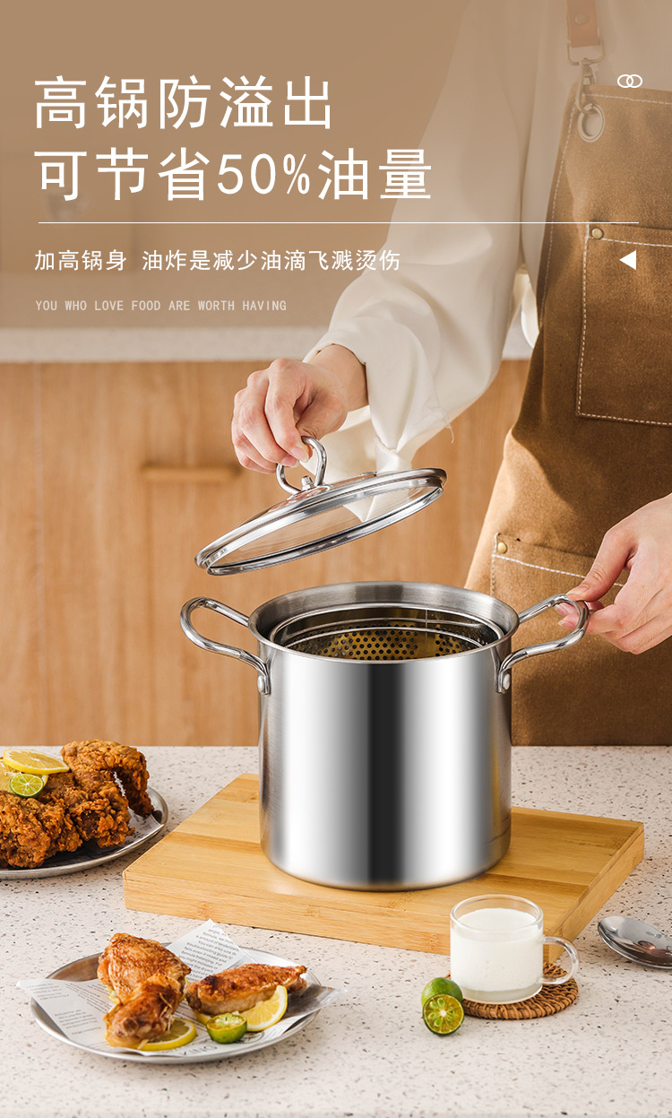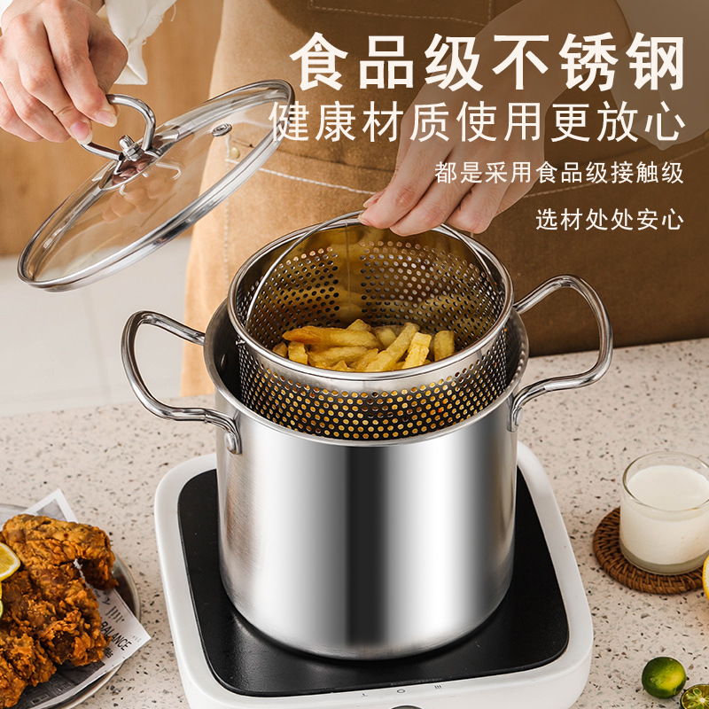 스테인레스 스틸 프라이어 주방 연비 효율적인 소형 딥 포트 (여과기 포함) 다기능 바이노럴 가정용 티안루오 프라이어