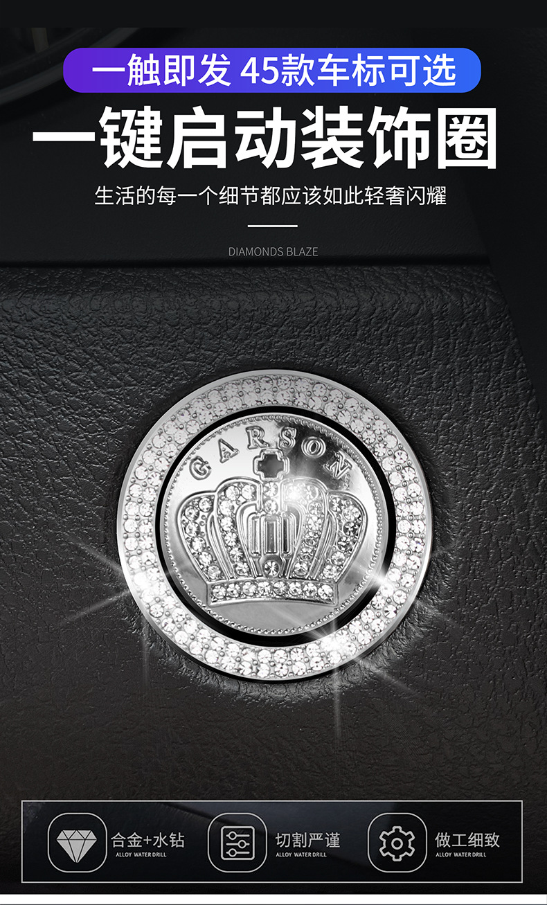 공장 직영 자동차 원 버튼 스타트 장식 스틱 다이아몬드 자동차 로고 버튼 스틱 풀 드릴 점화 스위치 장식 드릴 스틱