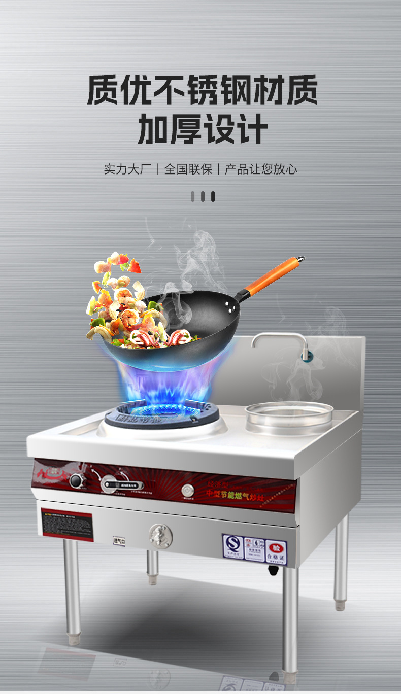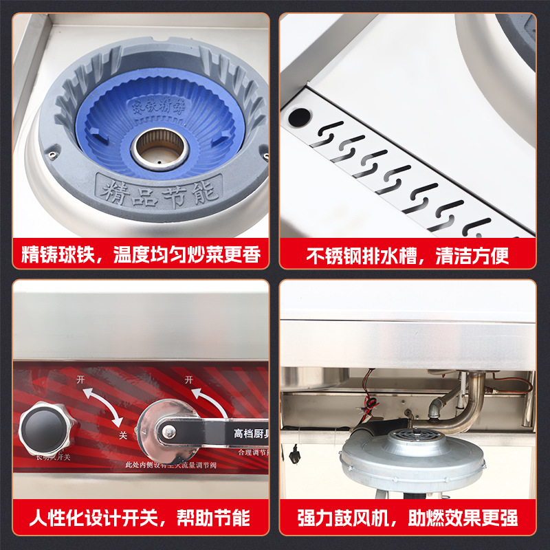 상업용 에너지 절약형 가스레인지, 강력한 화력의 액화가스 싱글/더블 스토브, 두꺼운 스테인리스 스틸 주방/레스토랑용 가스레인지