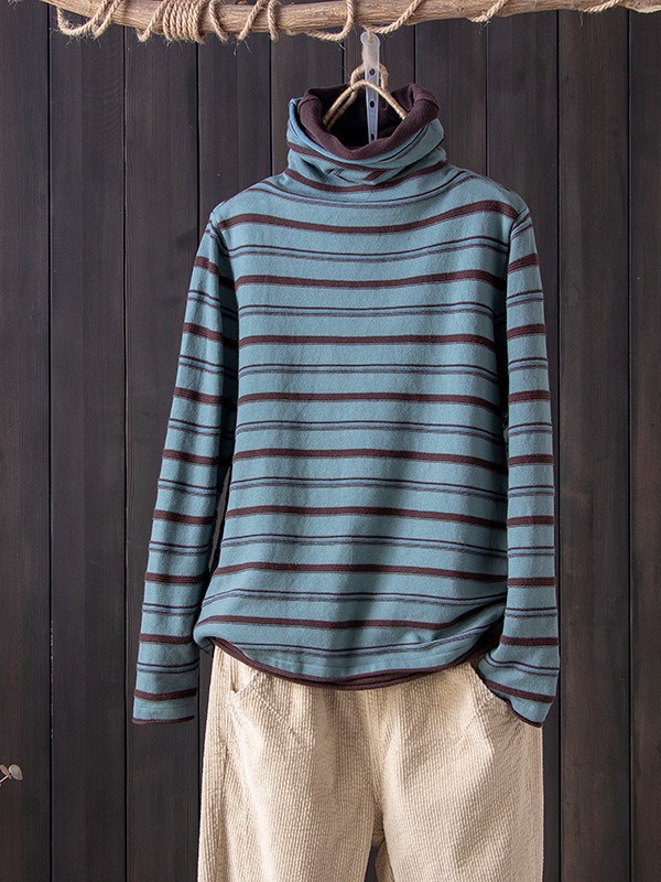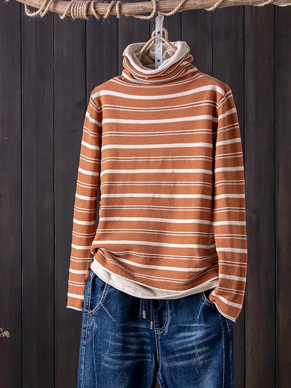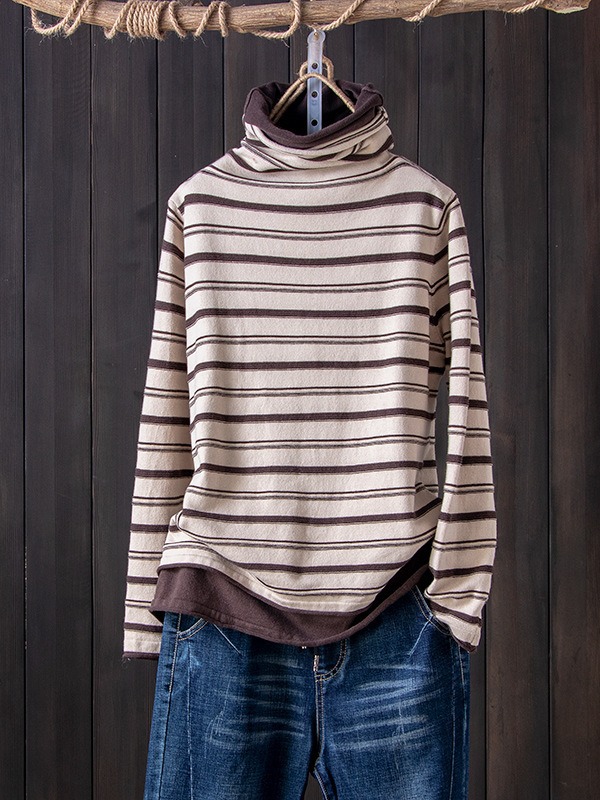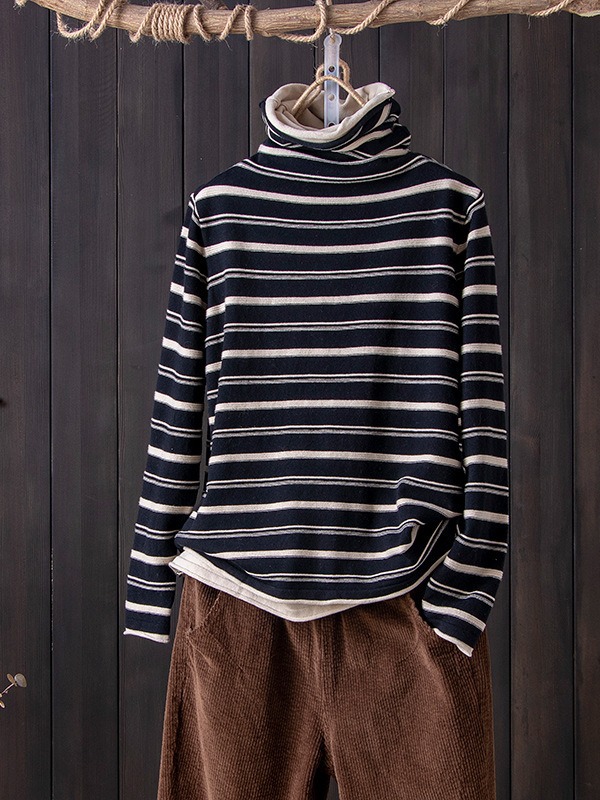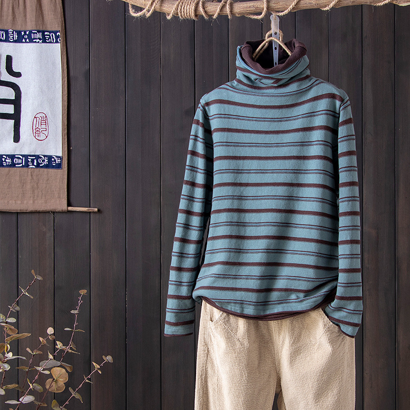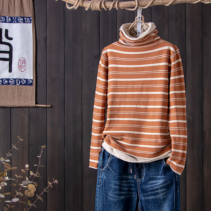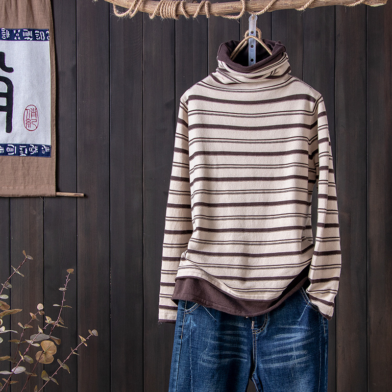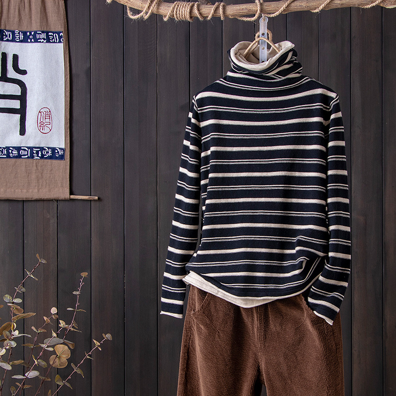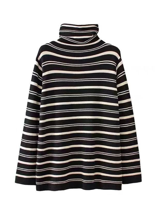 스트라이프 터틀넥 여성의 가을과 겨울 새로운 스타일 서양식 슬림 핏 슬리밍 힐 칼라 바닥 셔츠 긴소매 티셔츠 인