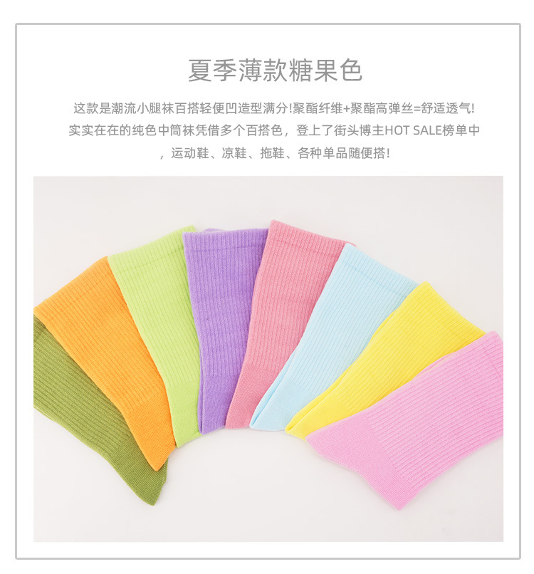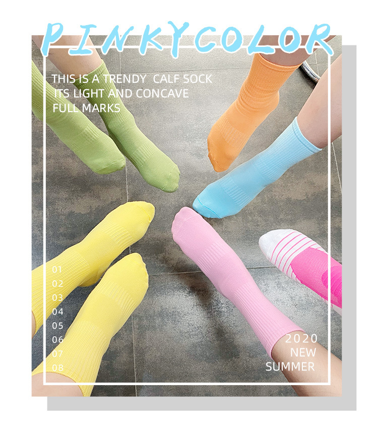 크로스 보더 캔디 컬러 여성용 양말 종아리 미드 튜브 땀 흡수 캐주얼 양말 필라테스 요가 양말 어린이 전문 미끄럼 방지 도매