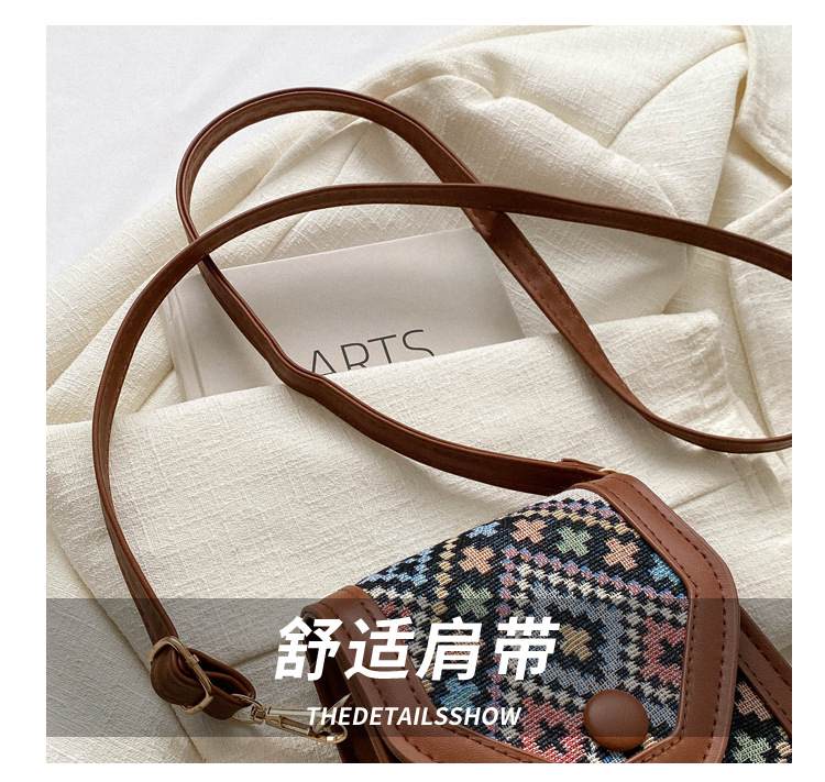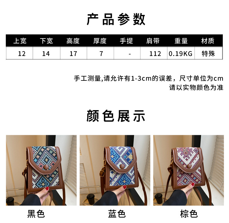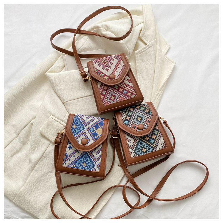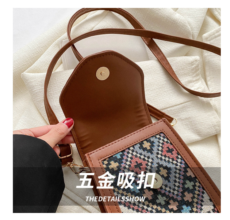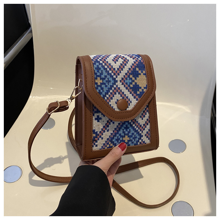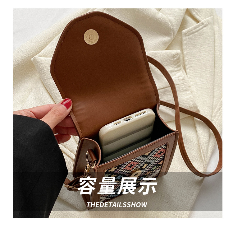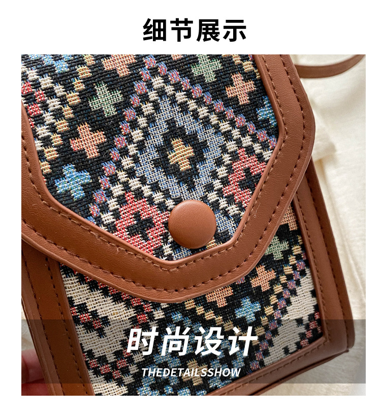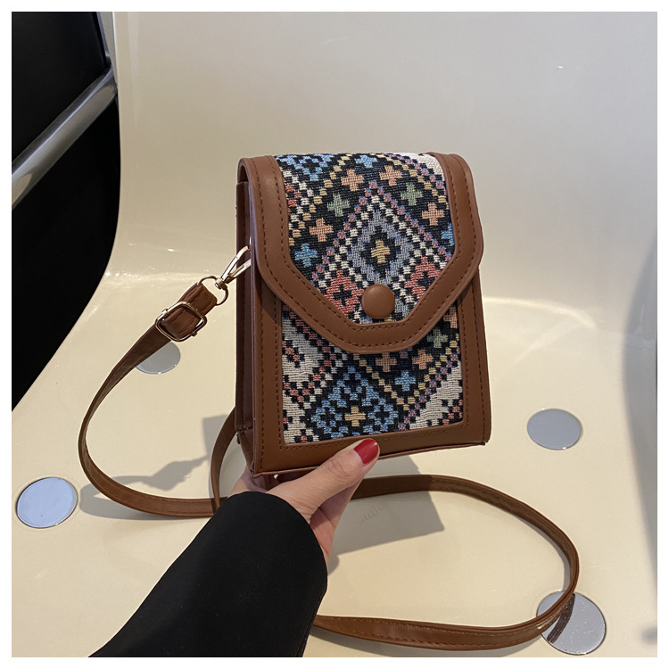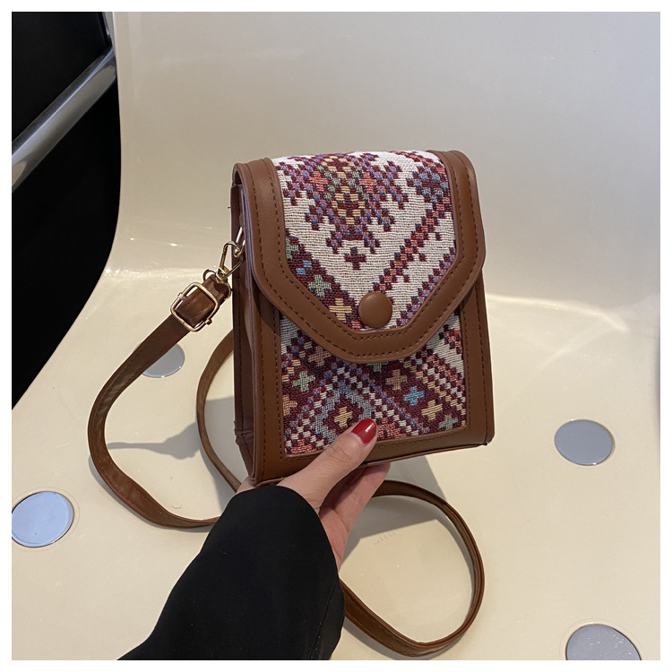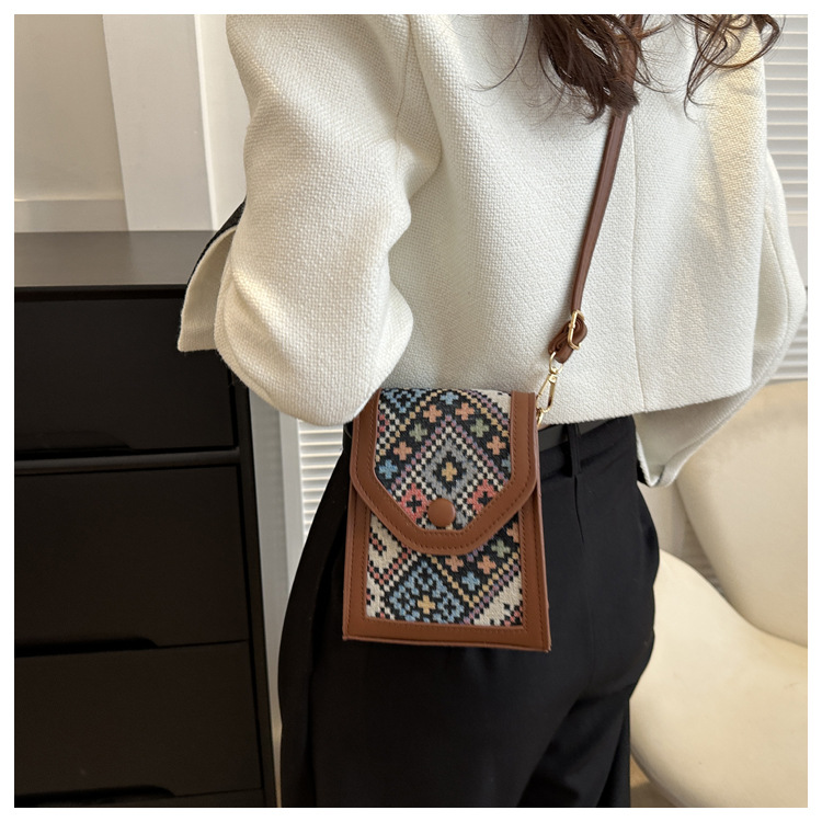 세련된 민족 스타일 크로스 바디 휴대 전화 가방 2023 겨울 새로운 스타일 싱글 숄더 작은 사각형 가방 세련된 대비 색상 동전 지갑