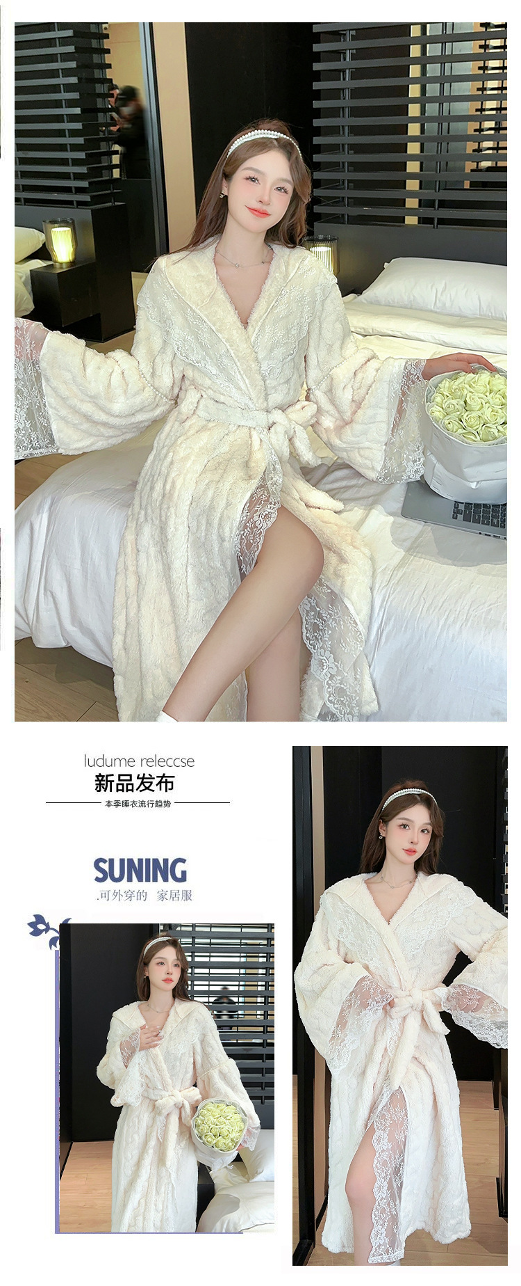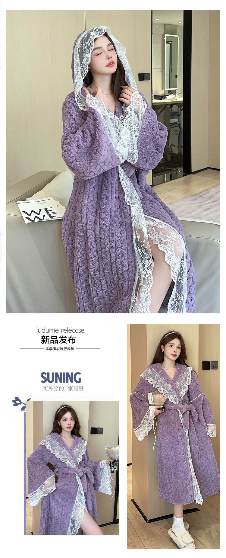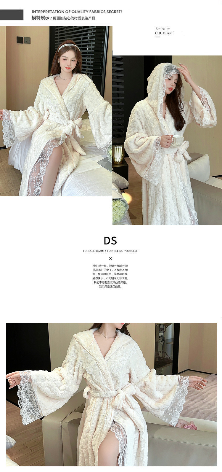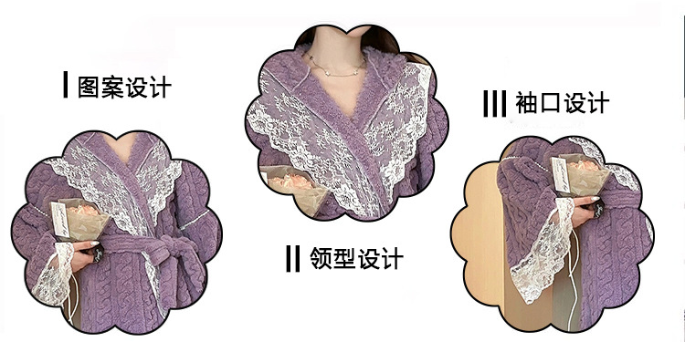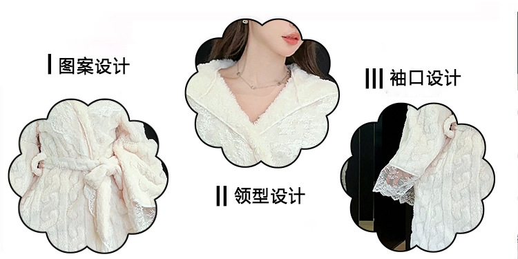 겨울 컷 꽃 벨벳 나이트 드레스 목욕 가운 후드가 두꺼운 따뜻한 긴 목욕 가운 달콤한 섹시한 레이스 파자마