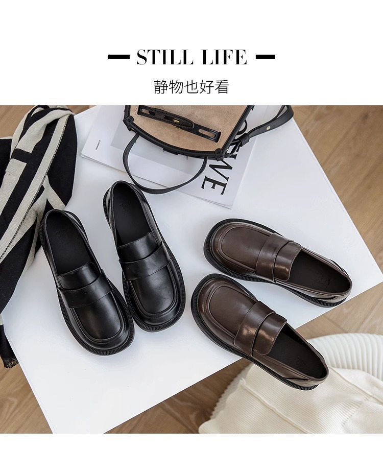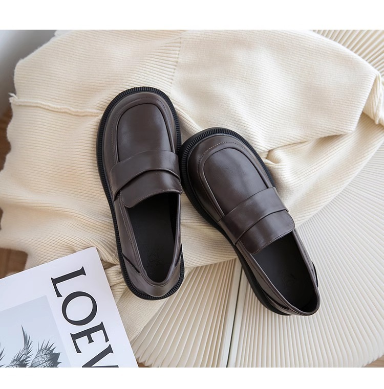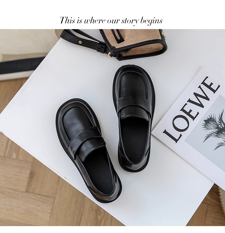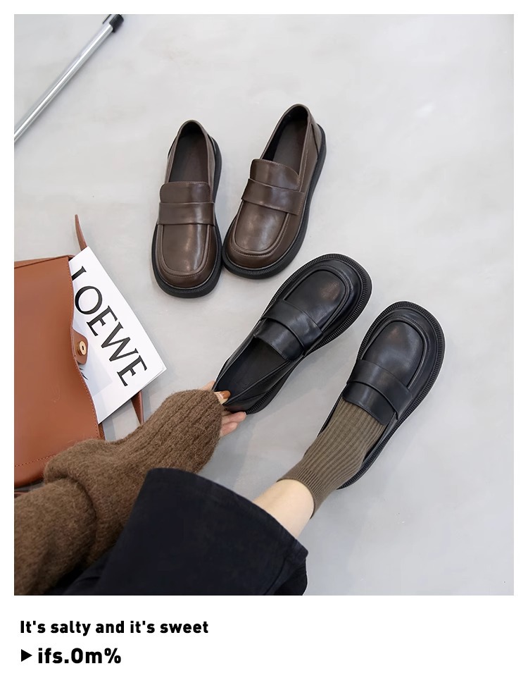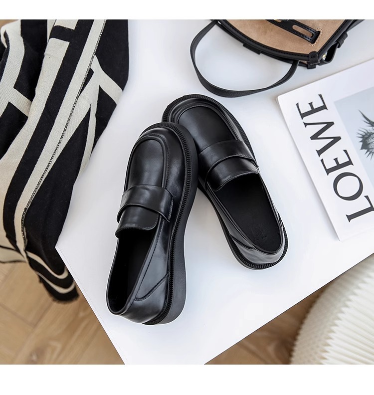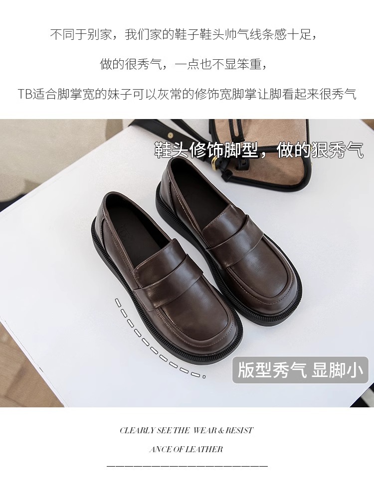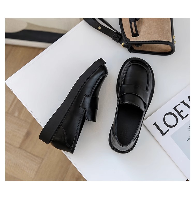 여성용 로퍼 2025 이른 봄 새로운 다용도 두꺼운 굽 두꺼운 밑창 영국 작은 가죽 신발 슬립 온 복고풍 가죽 신발