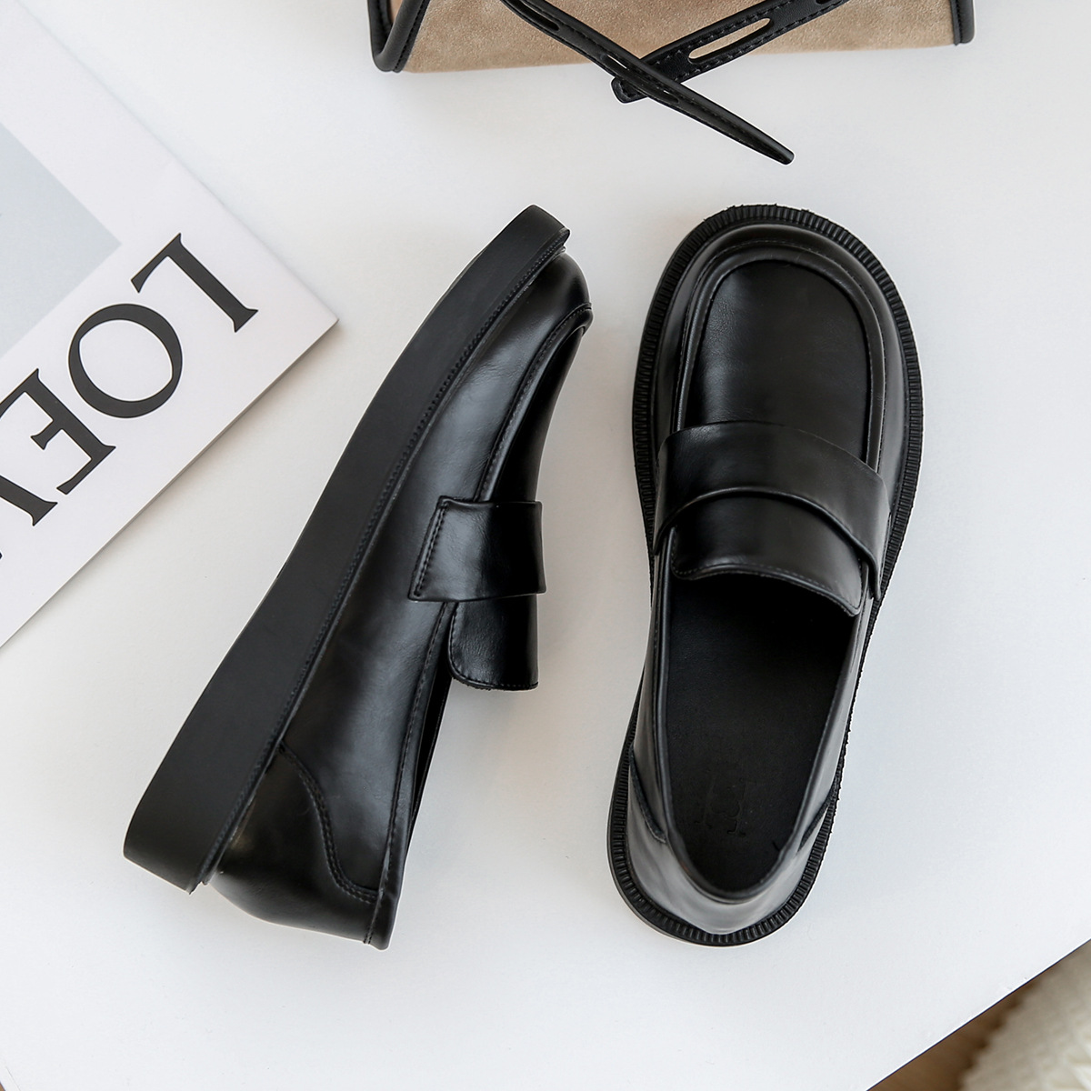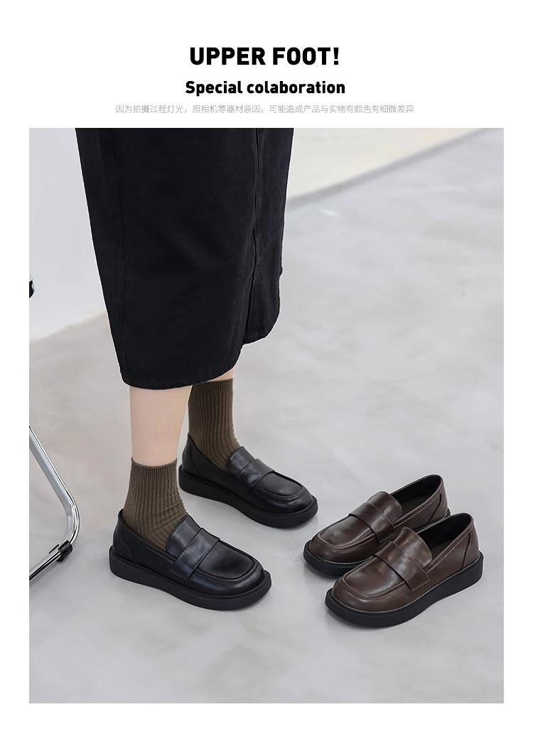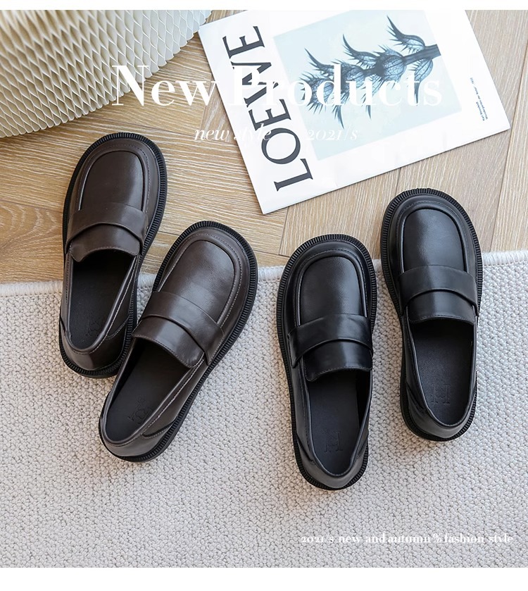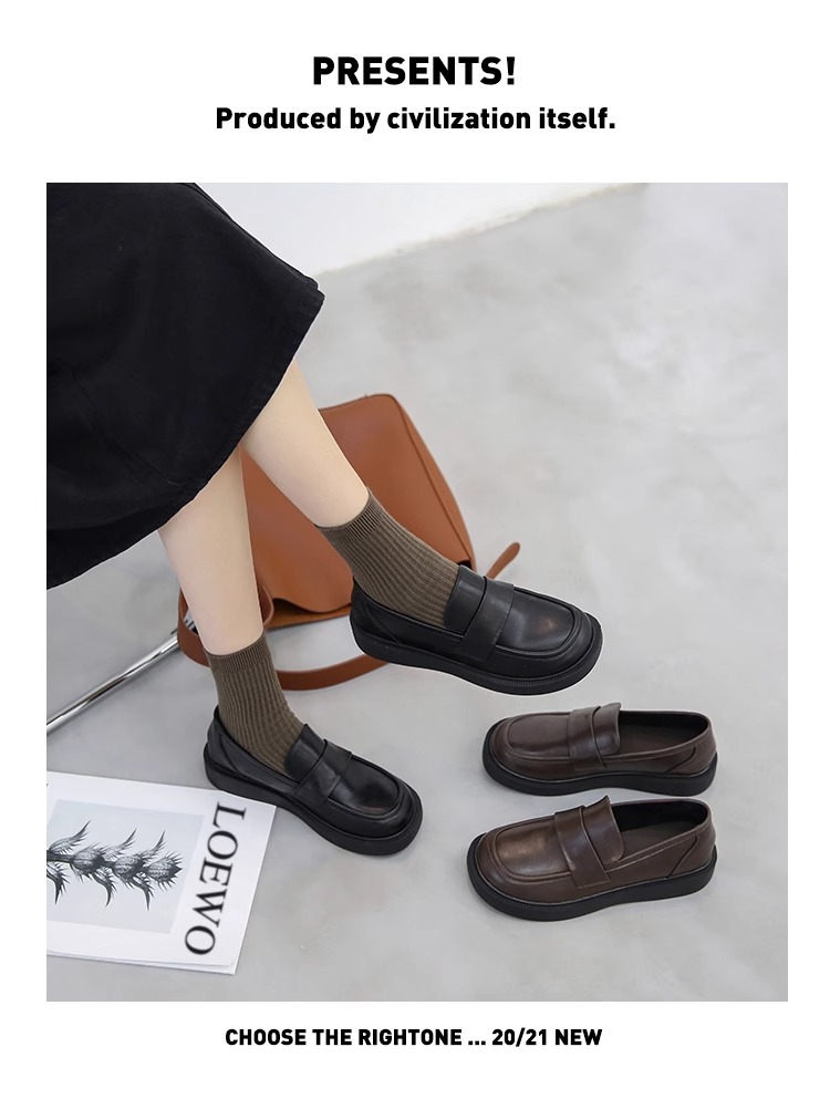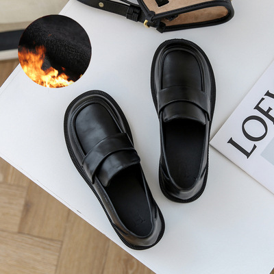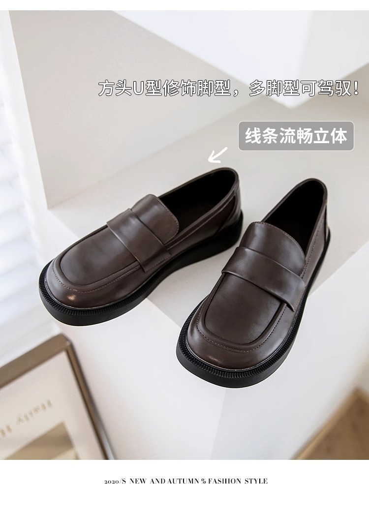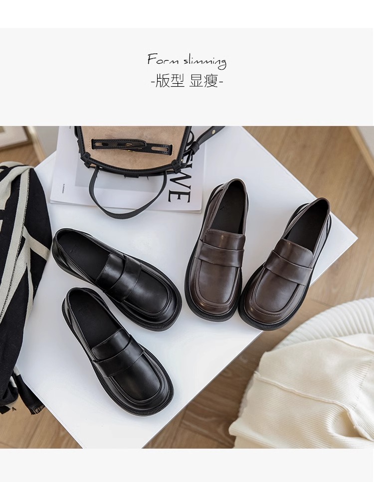 여성용 로퍼 2025 이른 봄 새로운 다용도 두꺼운 굽 두꺼운 밑창 영국 작은 가죽 신발 슬립 온 복고풍 가죽 신발