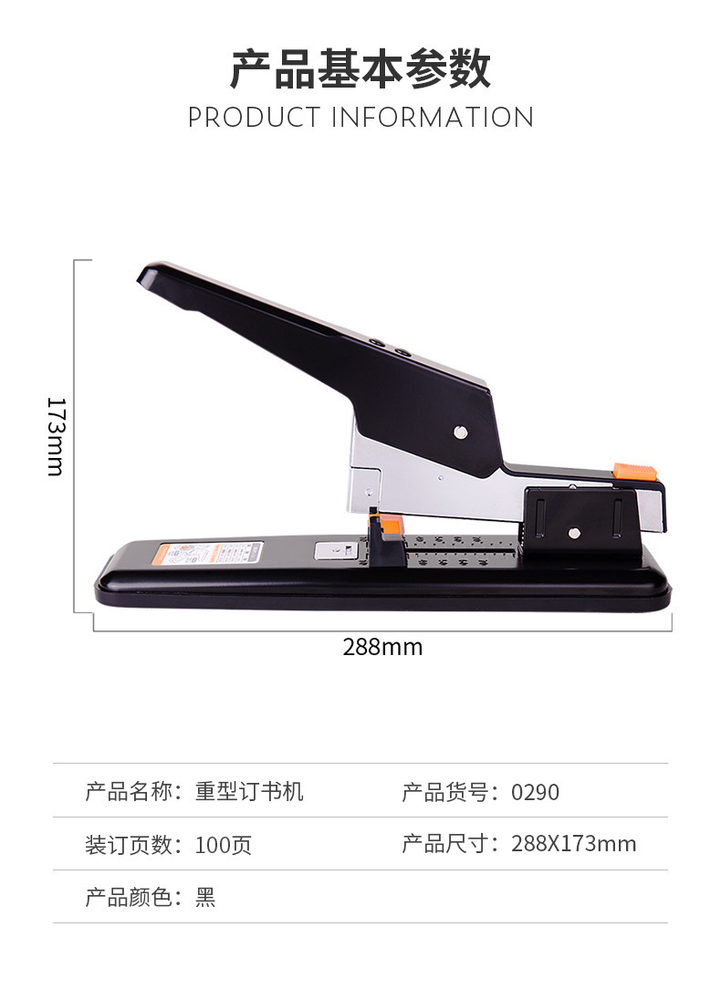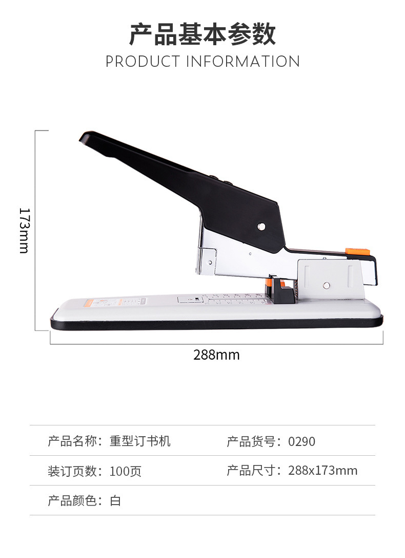 델리 스테이플러 대형 대형 두꺼운 100 페이지 스테이플러 학생 두꺼운 책 사무실 바인딩 기계 용품 주문