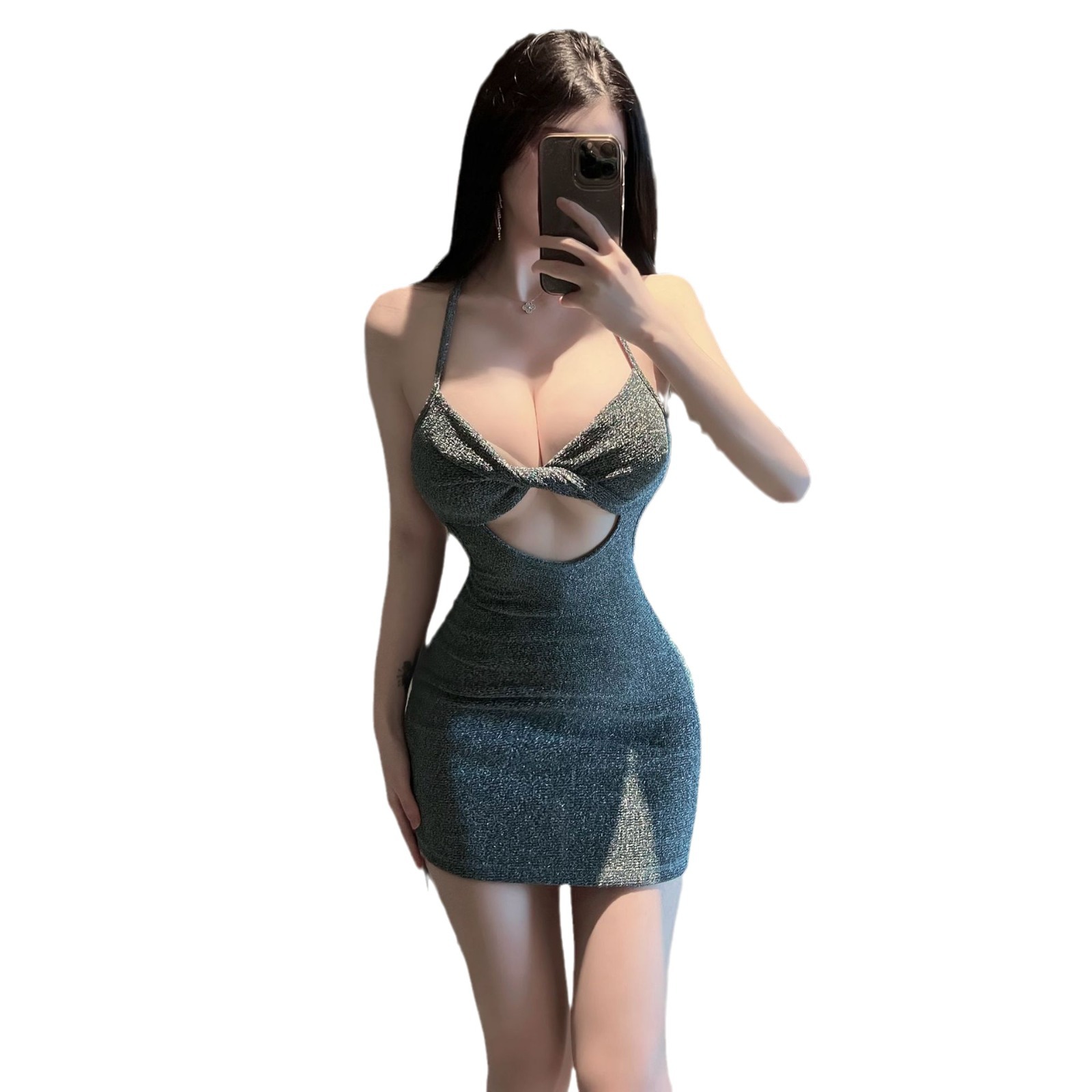 Ai Ruru 섹시 잠옷, 감각적인 속옷, 속이 비치는 튜브탑, 넥 스트랩 드레스, 몸에 꼭 맞는 힙 라인 드레스 5490