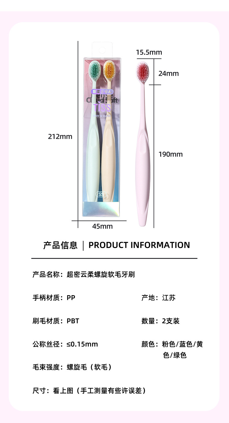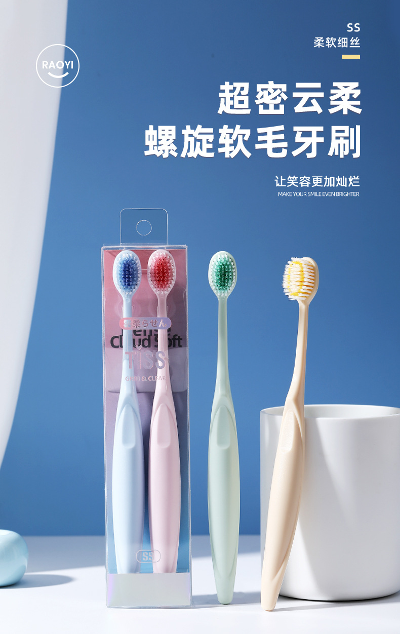 RAOYI 슈퍼 조밀 구름 소프트 나선형 소프트 칫솔 2 PC 성인 가정 커플 소프트 칫솔 공장 도매