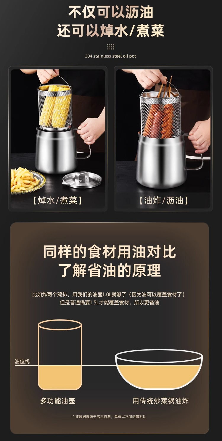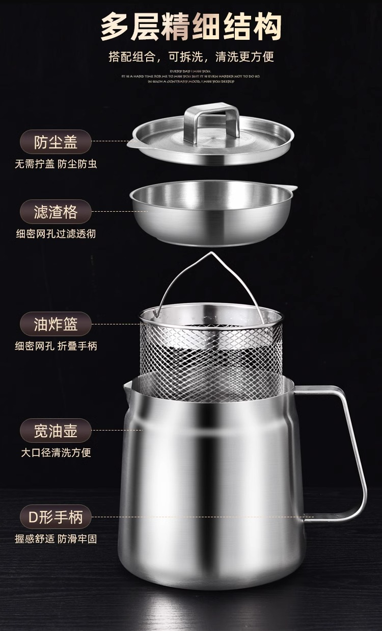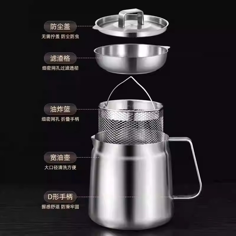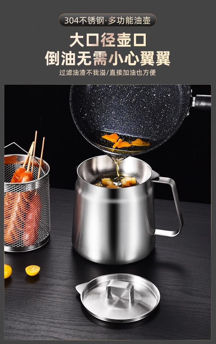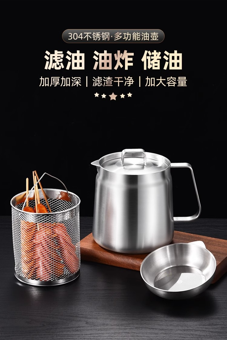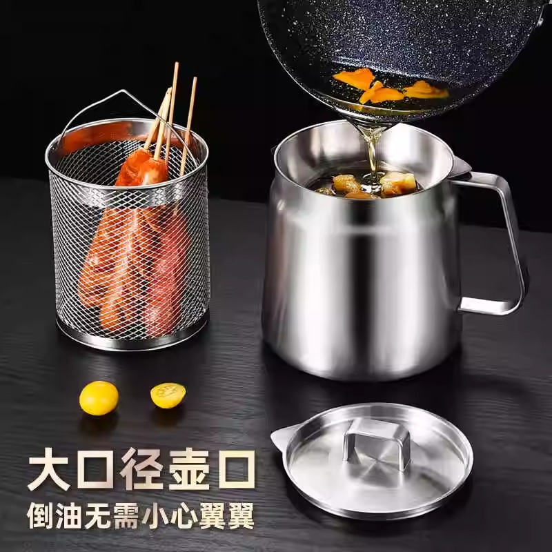필터가 있는 크로스보더 304 스테인리스 오일 포트, 누수 방지 주방용 튀김기, 대용량 오일 필터 포트, 가정용 오일 저장 포트