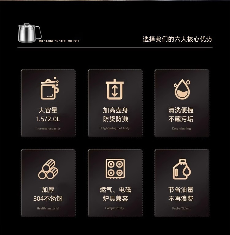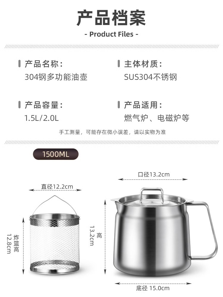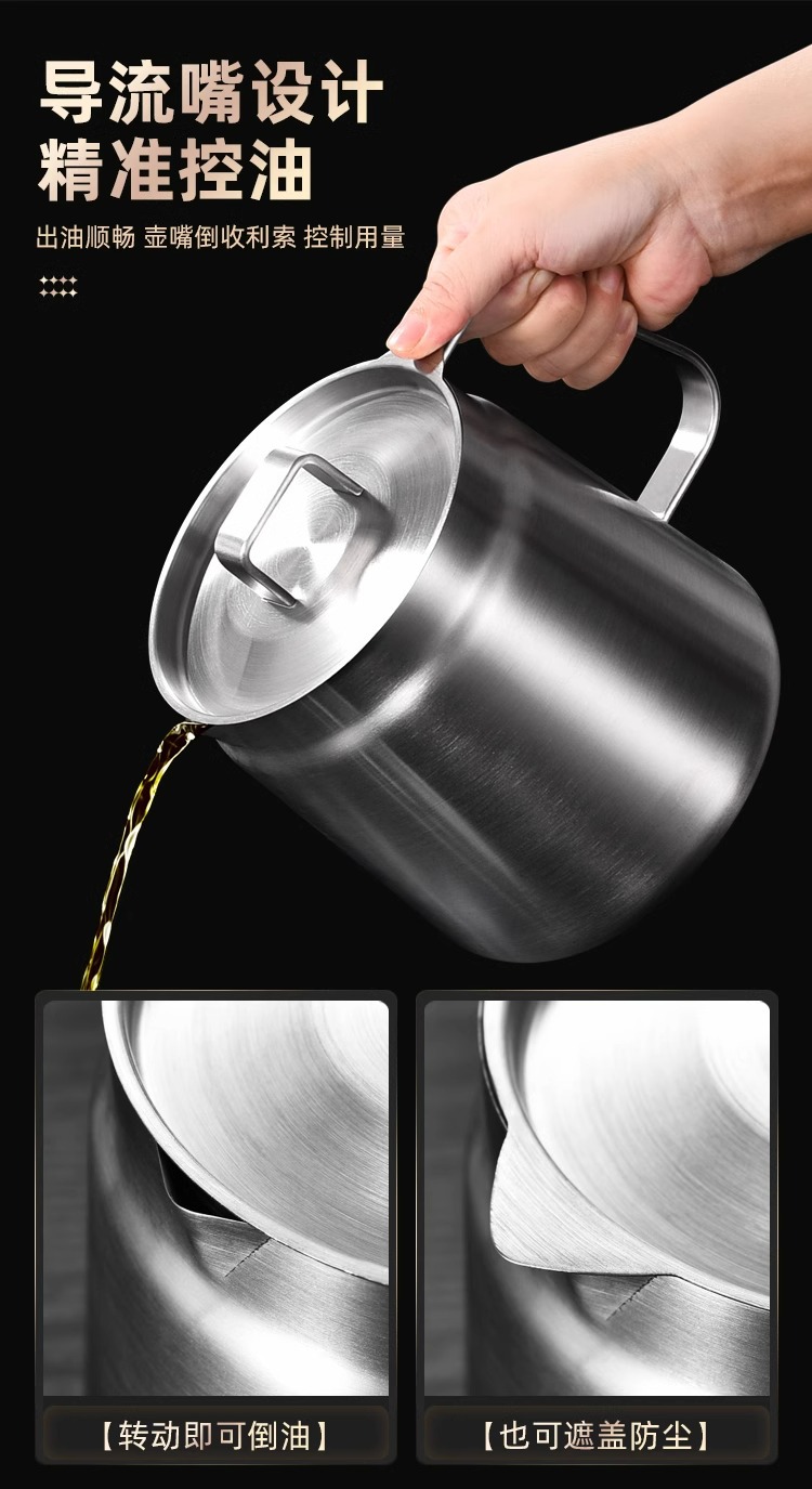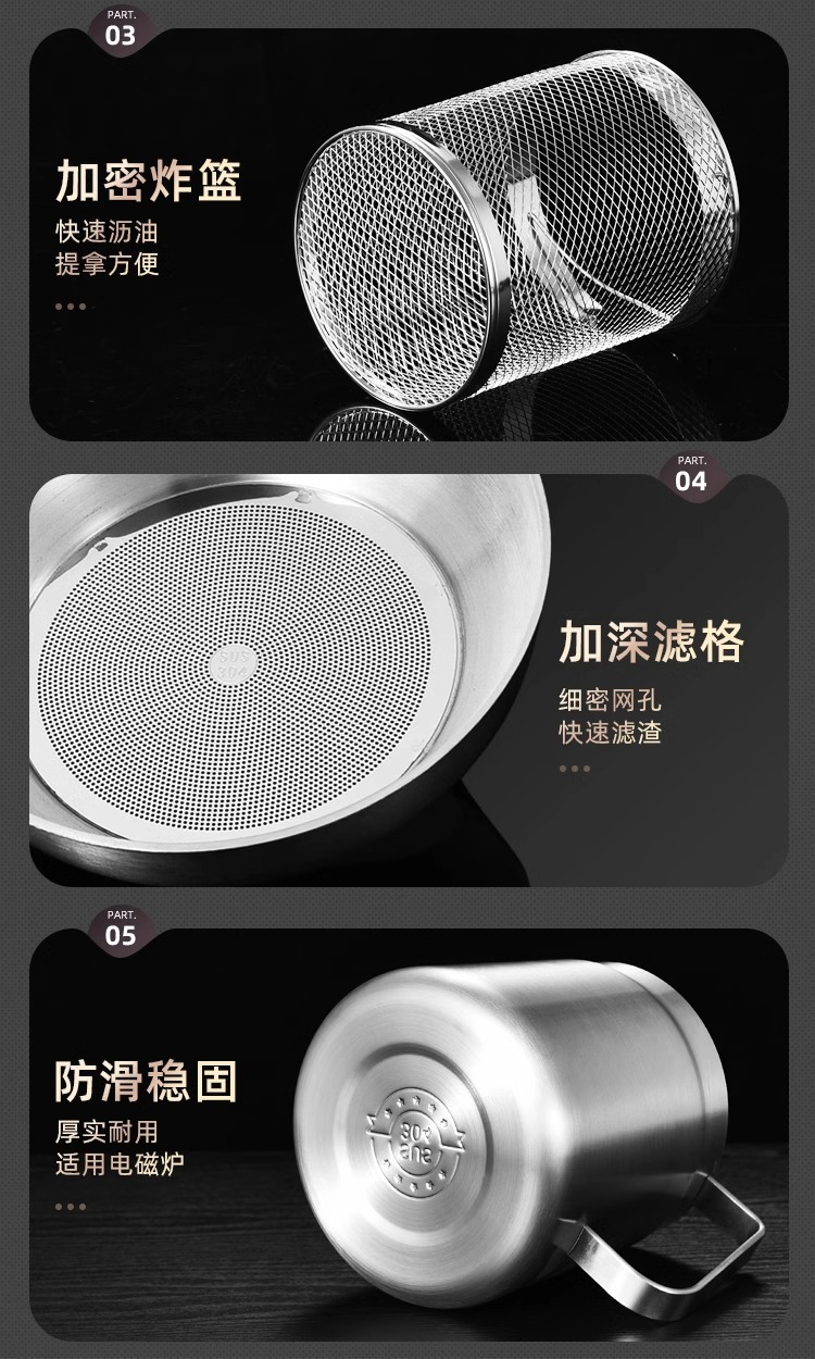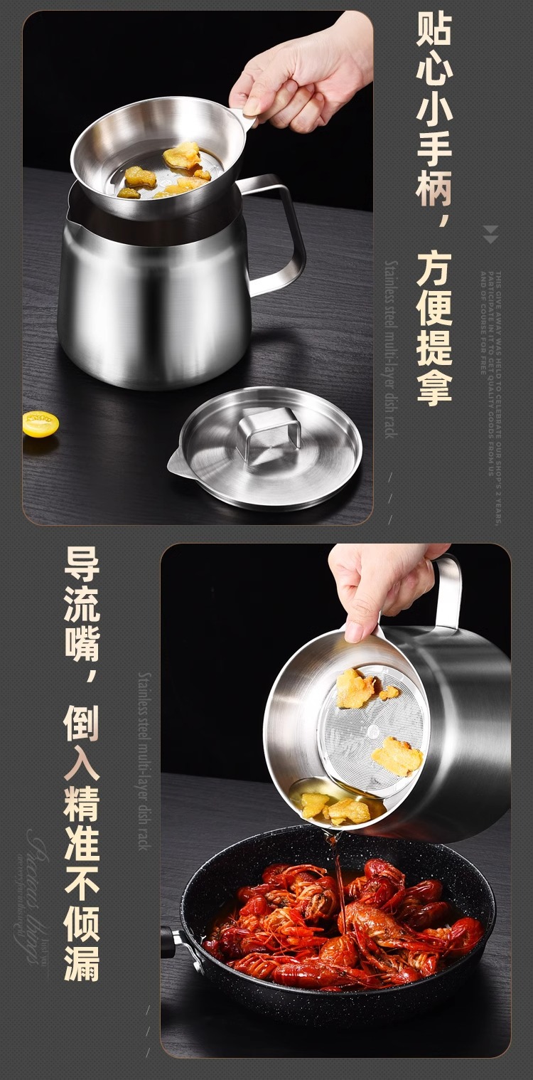 필터가 있는 크로스보더 304 스테인리스 오일 포트, 누수 방지 주방용 튀김기, 대용량 오일 필터 포트, 가정용 오일 저장 포트