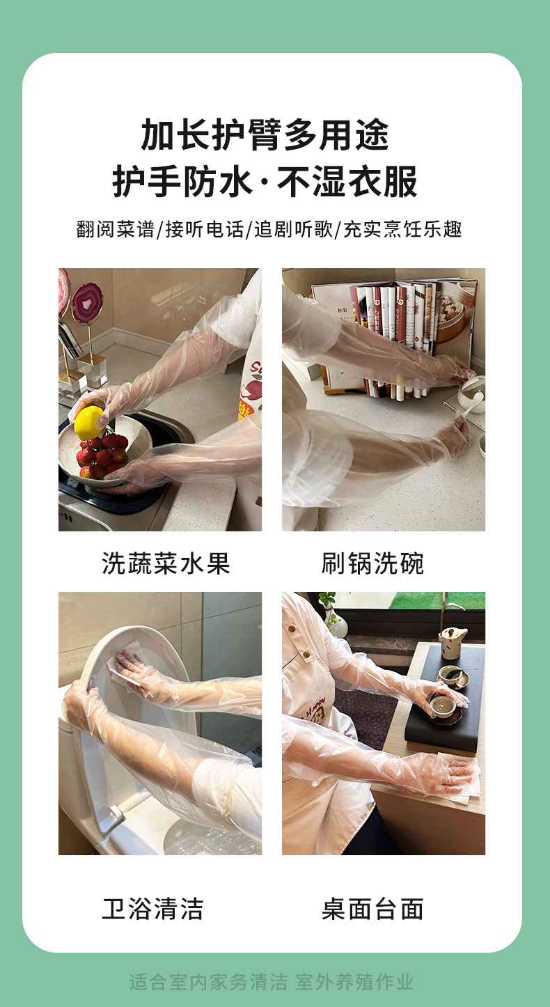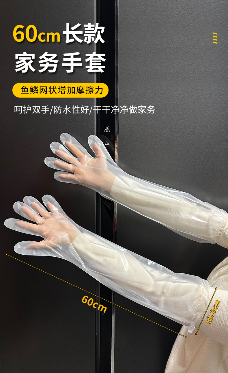 플라스틱 일회용 두꺼운 장갑 CPE 방수 및 방유 주방 가사용 탄력 밴드형 청소 장갑