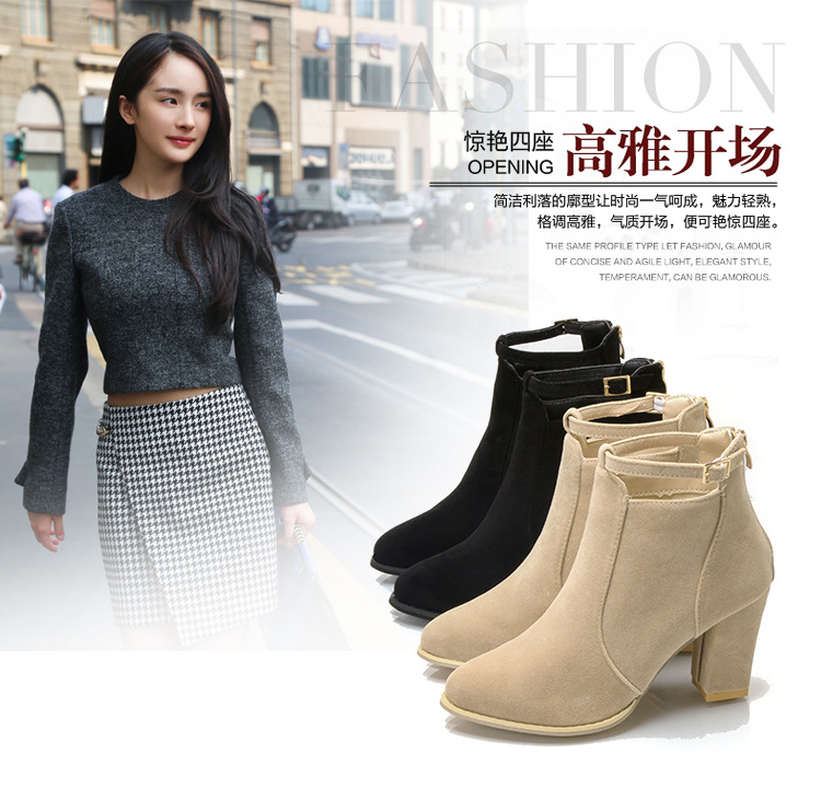 국경 간 대외 무역 플러스 사이즈 뉴 마틴 부츠 여성 가을과 겨울 유럽과 미국 패션 올 매치 소원 청키 힐 하이힐 발목 부츠 여성