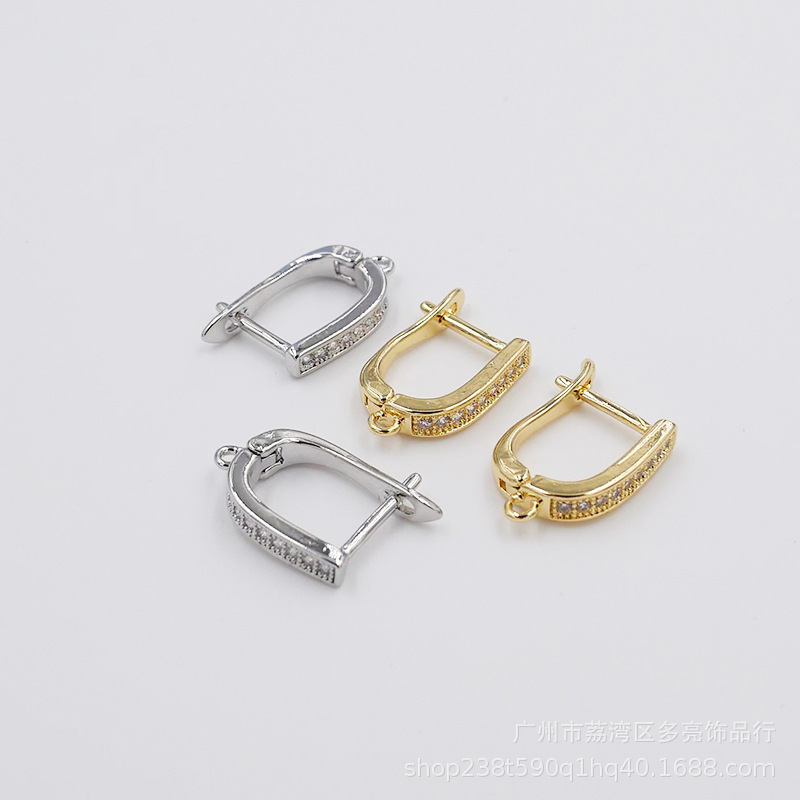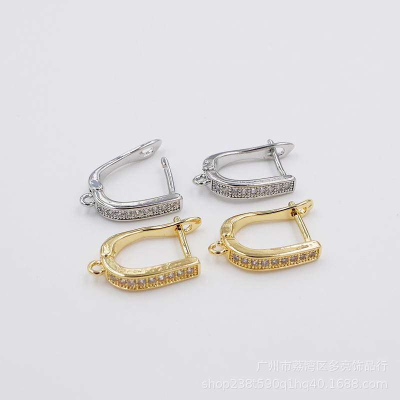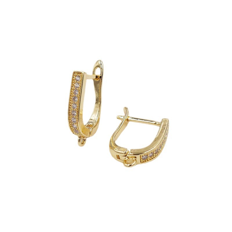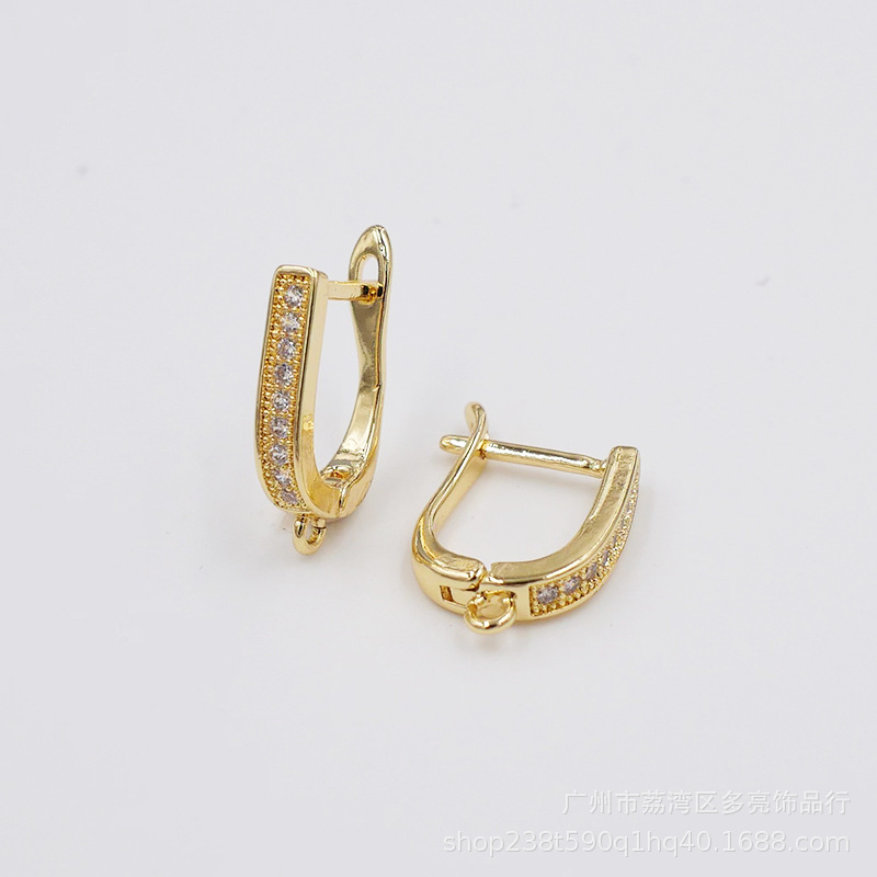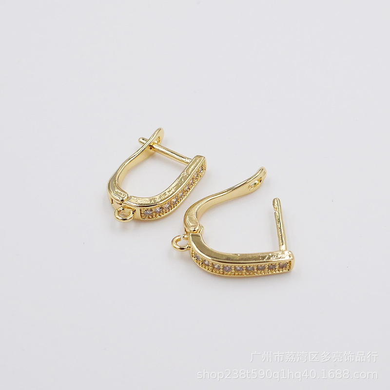 구리 귀걸이 전기 도금 18K 금 귀걸이 U 자형 세트 지르콘 귀걸이 여성 액세서리 보석 도매