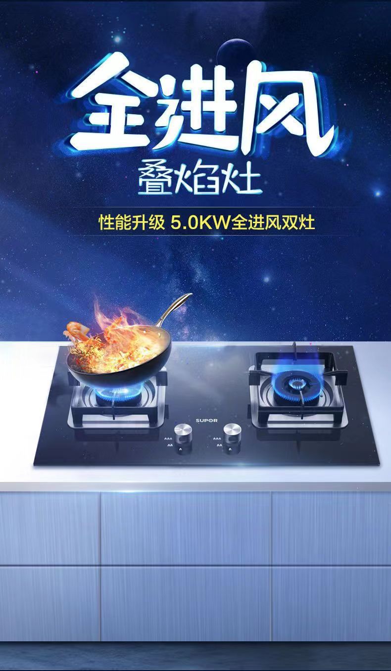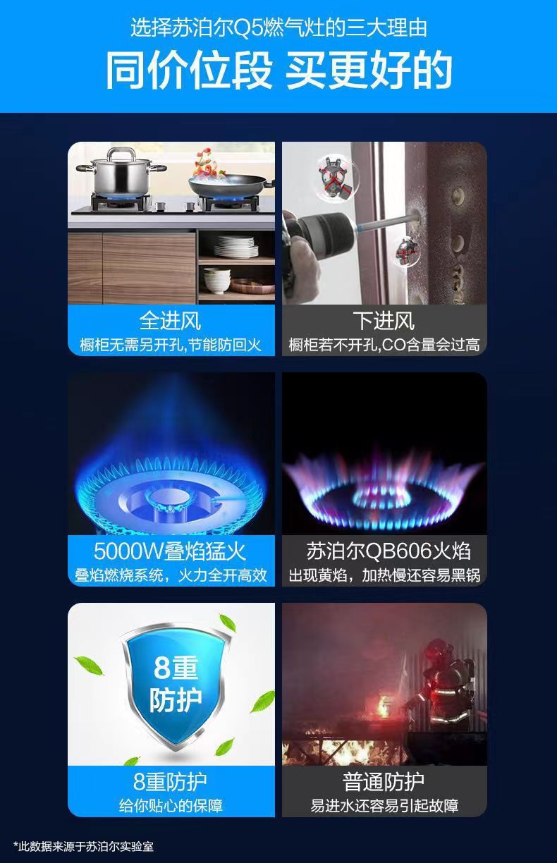 Suppor Q5 가스 스토브 5KW 높은 화재 임베디드 데스크탑 이중 용도 가정용 더블 스토브 강화 유리 전체 공기 입구