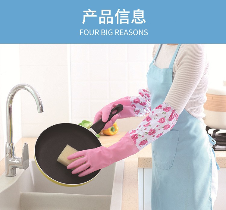세탁 요리와 옷 장갑 여성용 벨벳이 두껍게 된 겨울 긴 거트 입 연장 겨울 내구성 방수 주방 가사
