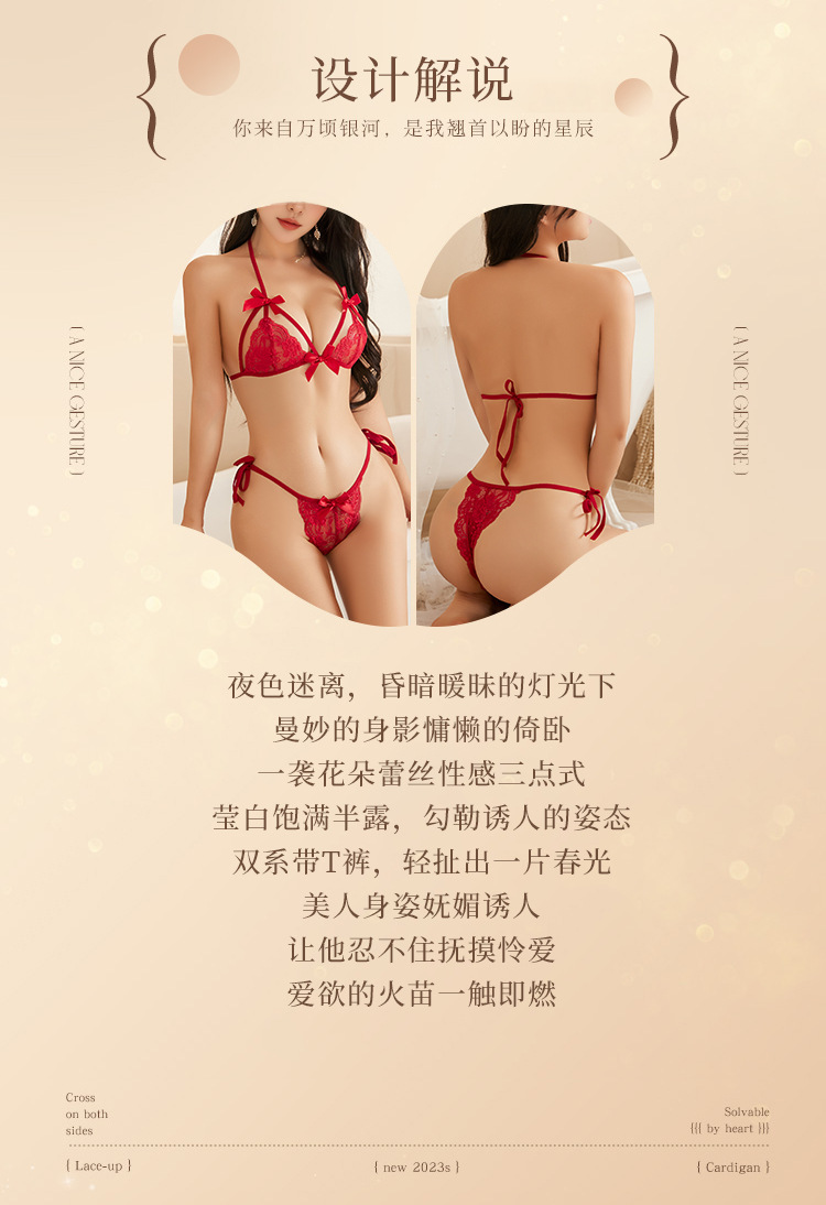 섹시한 속옷 섹시한 레이스 3 점 브라 속옷 여성 투명 유혹 잠옷 세트 도매 끈