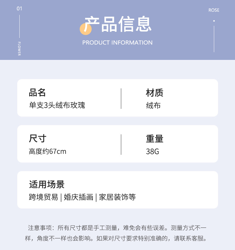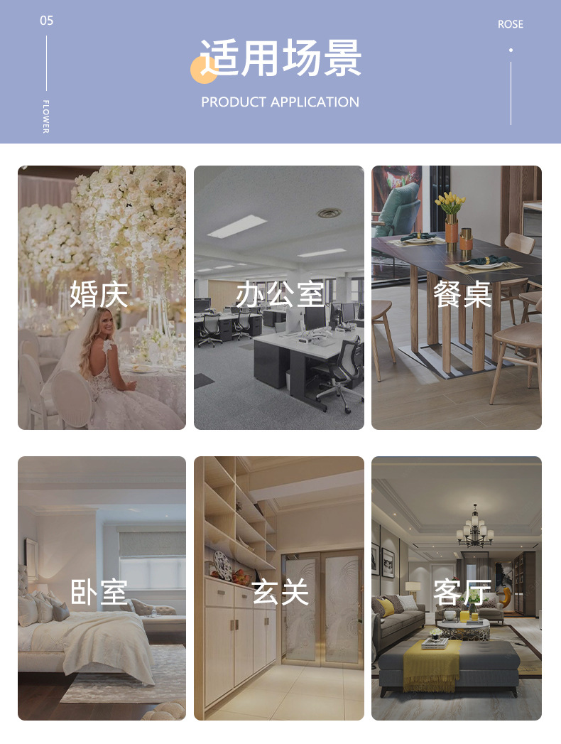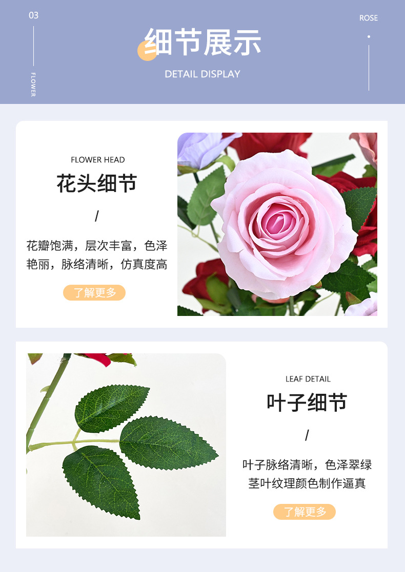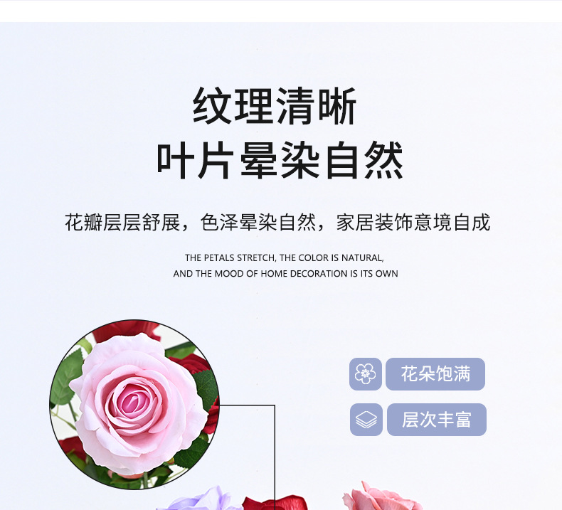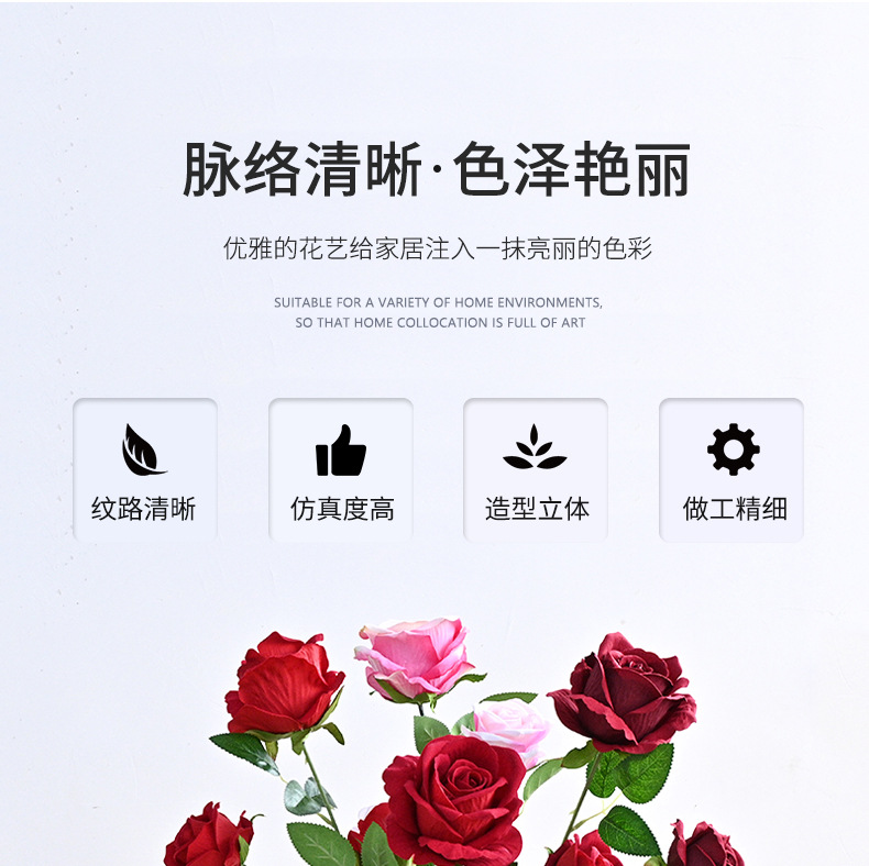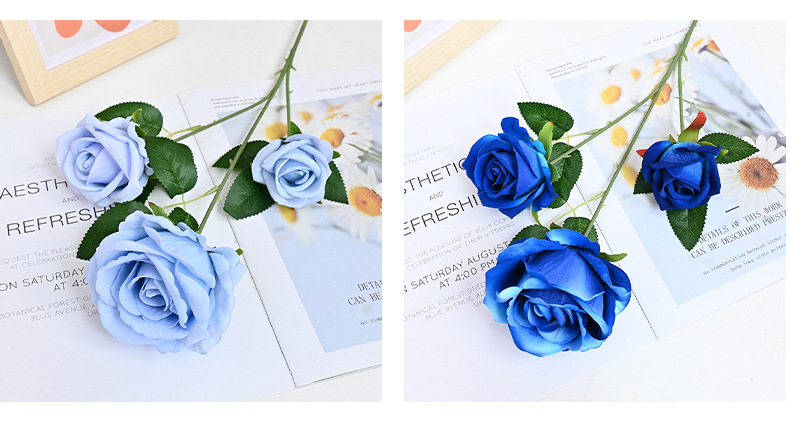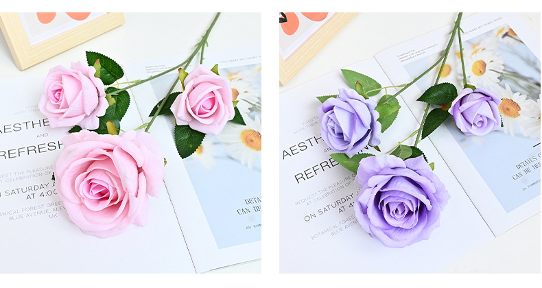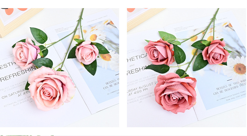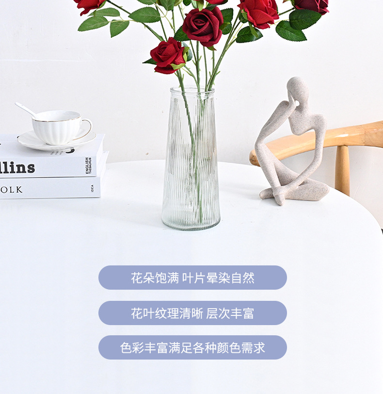 도매 3 헤드 플란넬 로즈 웨딩 홀 꽃꽂이 장식 꽃병 아름다운 시뮬레이션 멀티 헤드 장미 바닥 행 홈