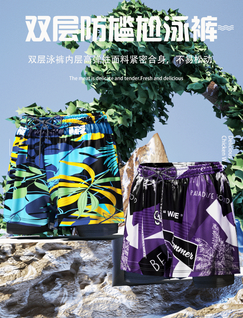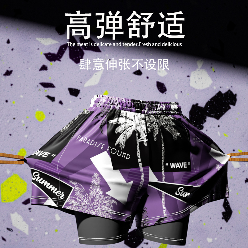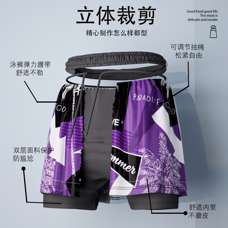 수영 트렁크 남자 더블 레이어 남자 온천 바지 플러스 사이즈 느슨한 수영 트렁크 남자 패션 수영 고글 수영 모자 수영 트렁크 세트