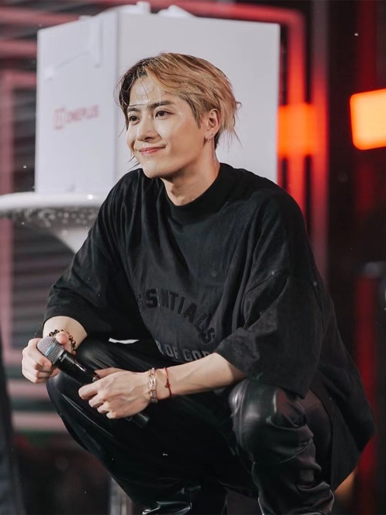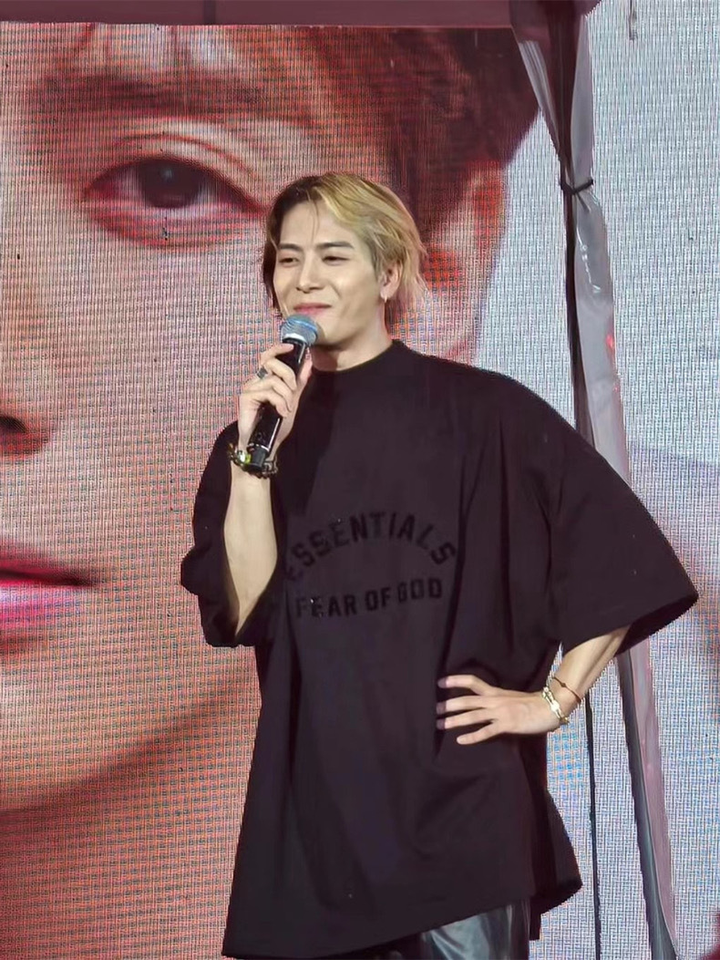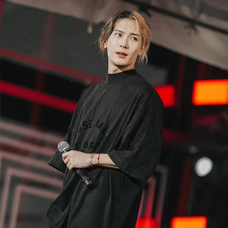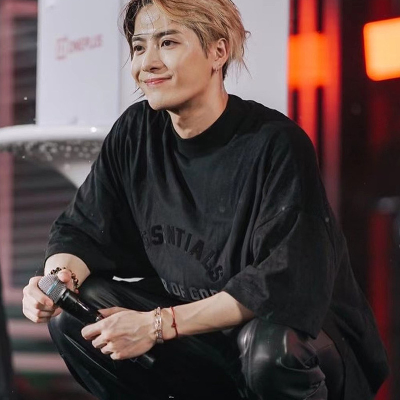 FOG 미국 패션 브랜드 ESSENTIALS 라인 블랙 작은 하이 칼라 느슨한 반팔 티셔츠 남성용 Wang Jiaer